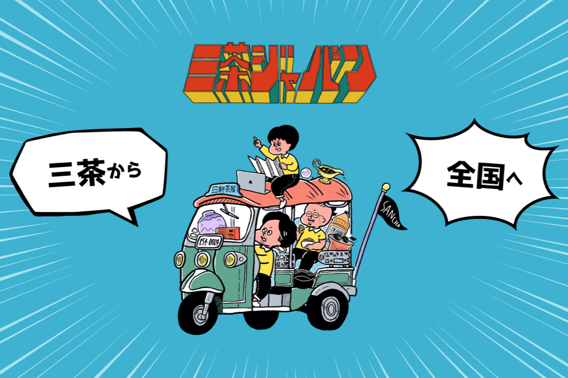 「三茶JAPAN」か「三茶ジャパン」、どちらにするかだいぶ悩んだのですが、カタカナの方がお茶目に感じたのでカタカナにしました。