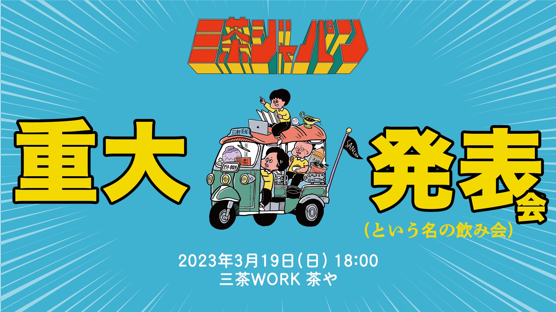 【3月19日(日)18時〜】三茶ジャパン活動報告会(という名の飲み会)開催!