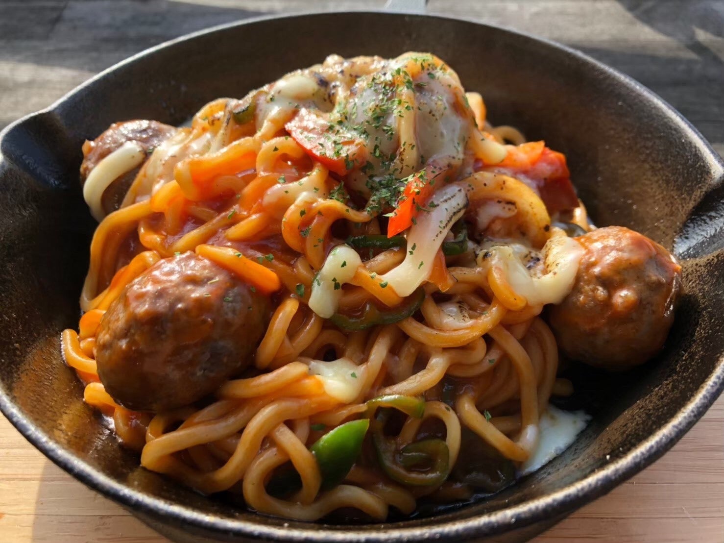 ソーセージ、ピーマン、玉ねぎと共に炒めた後、昔ながらのケチャップソースを絡めたオリジナルナポリタンは絶品です!