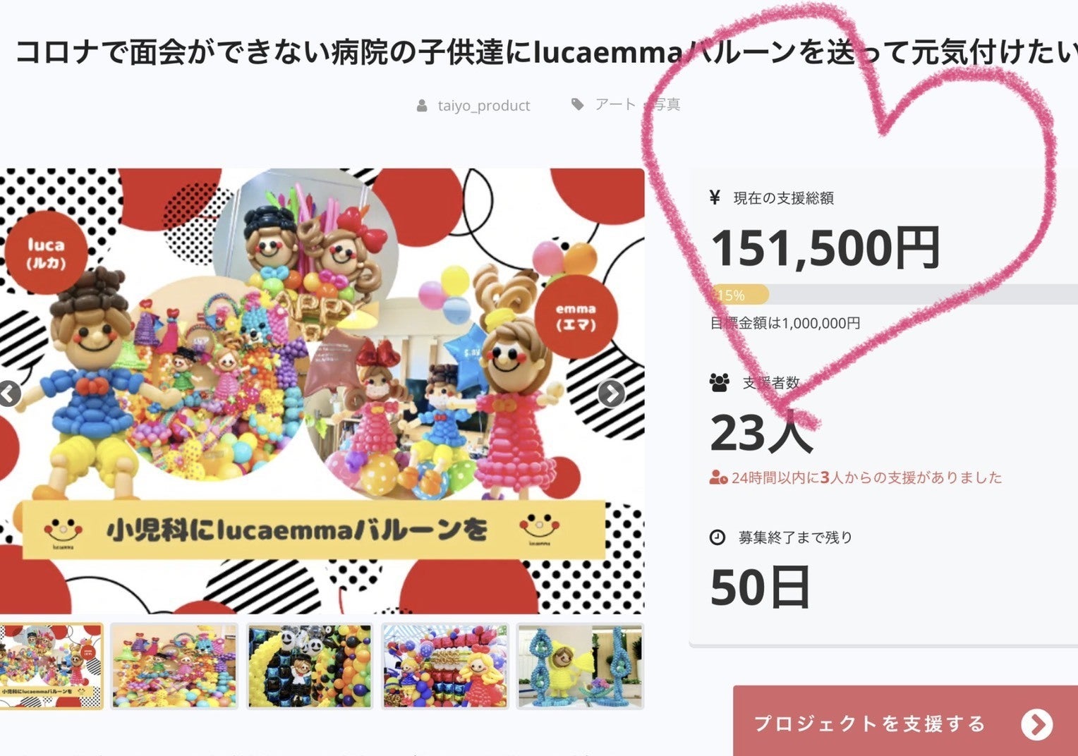 プロジェクト達成し、病院にいる子どもたちにたくさんの笑顔を届けられるように頑張ります!ぜひ最後まで応援よろしくお願いします!!!