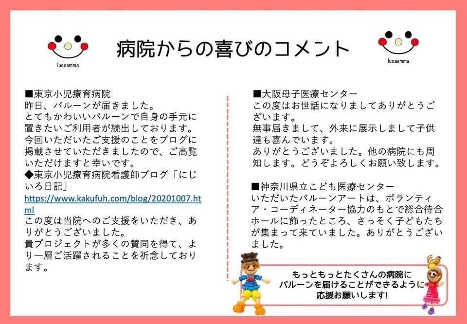 ご支援頂いた皆様から、たくさんの温かいメッセージをいただきました。