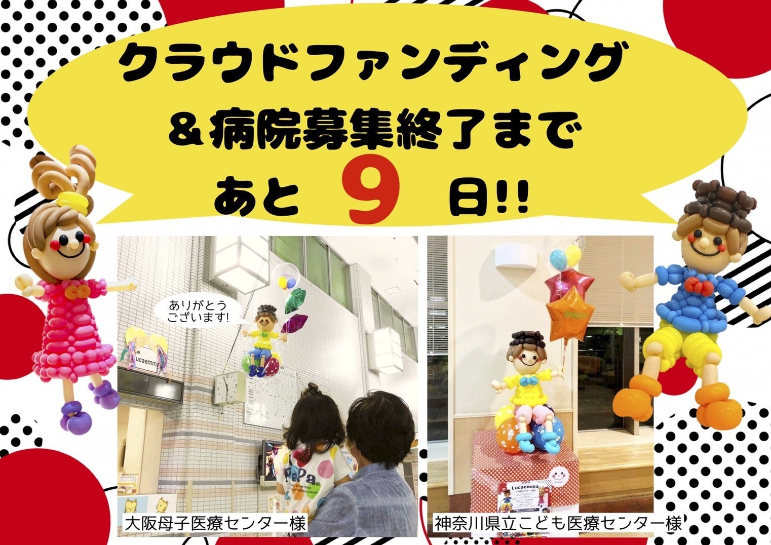 より多くのこどもたちに、lucaemmaバルーンを見ていただき、笑顔と元気を届けるため、スタッフ一同チカラを合わせて頑張ります!