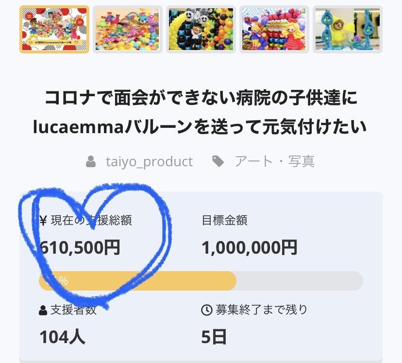 プロジェクト達成し、病院にいる子どもたちにたくさんの笑顔を届けられるように頑張ります!ぜひ最後まで応援よろしくお願いします!!!