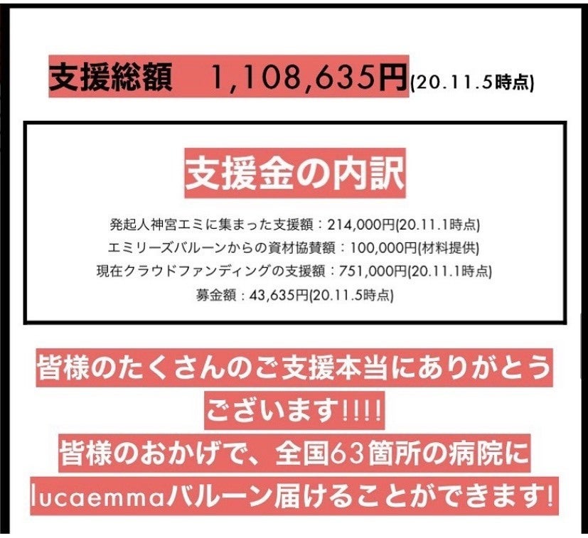 そしてなんと!全国63箇所の病院にLucaemmaバルーンを届けることが決定しました。