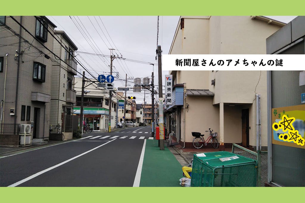 M公園からの帰り道、近くの新聞屋さんでアメをもらいたいってこどもたちが言うので、スタッフも新聞屋さんの入り口まで行ってみました。