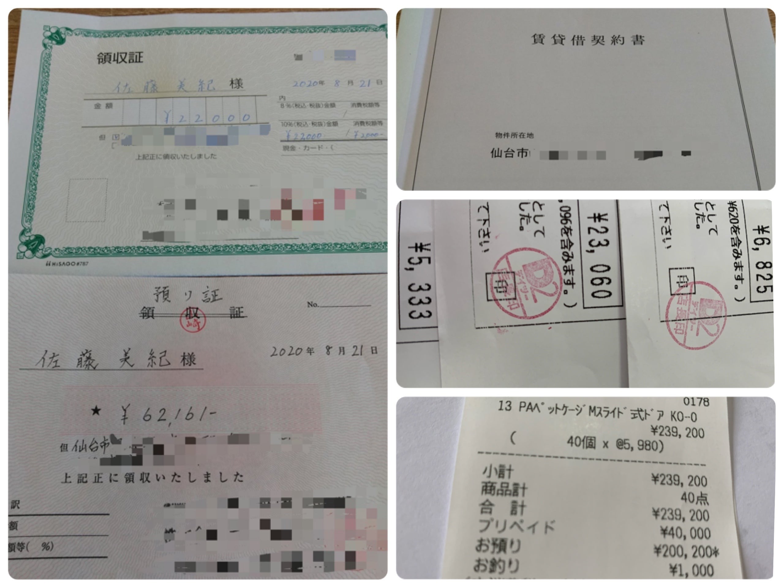 仮宿の賃料4ヶ月分 20万円