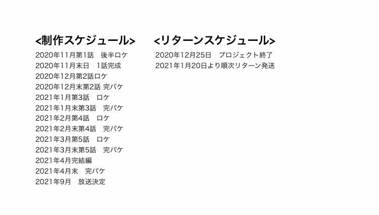 ※コロナの状況を見ながらになりますので撮影ロケなど状況により放送日程は前後します。
