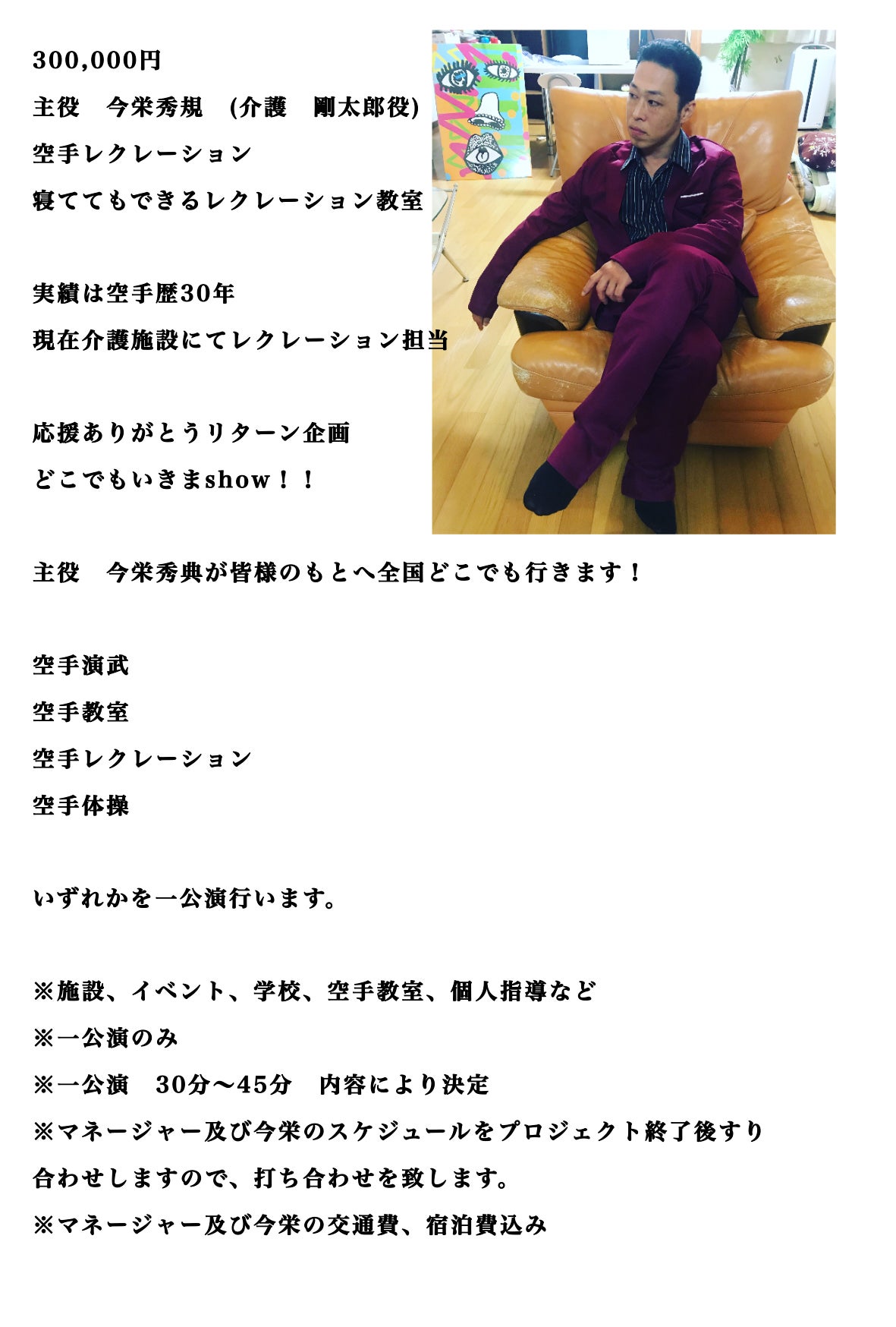 代表である徳も空手レクレーションなど介護施設での