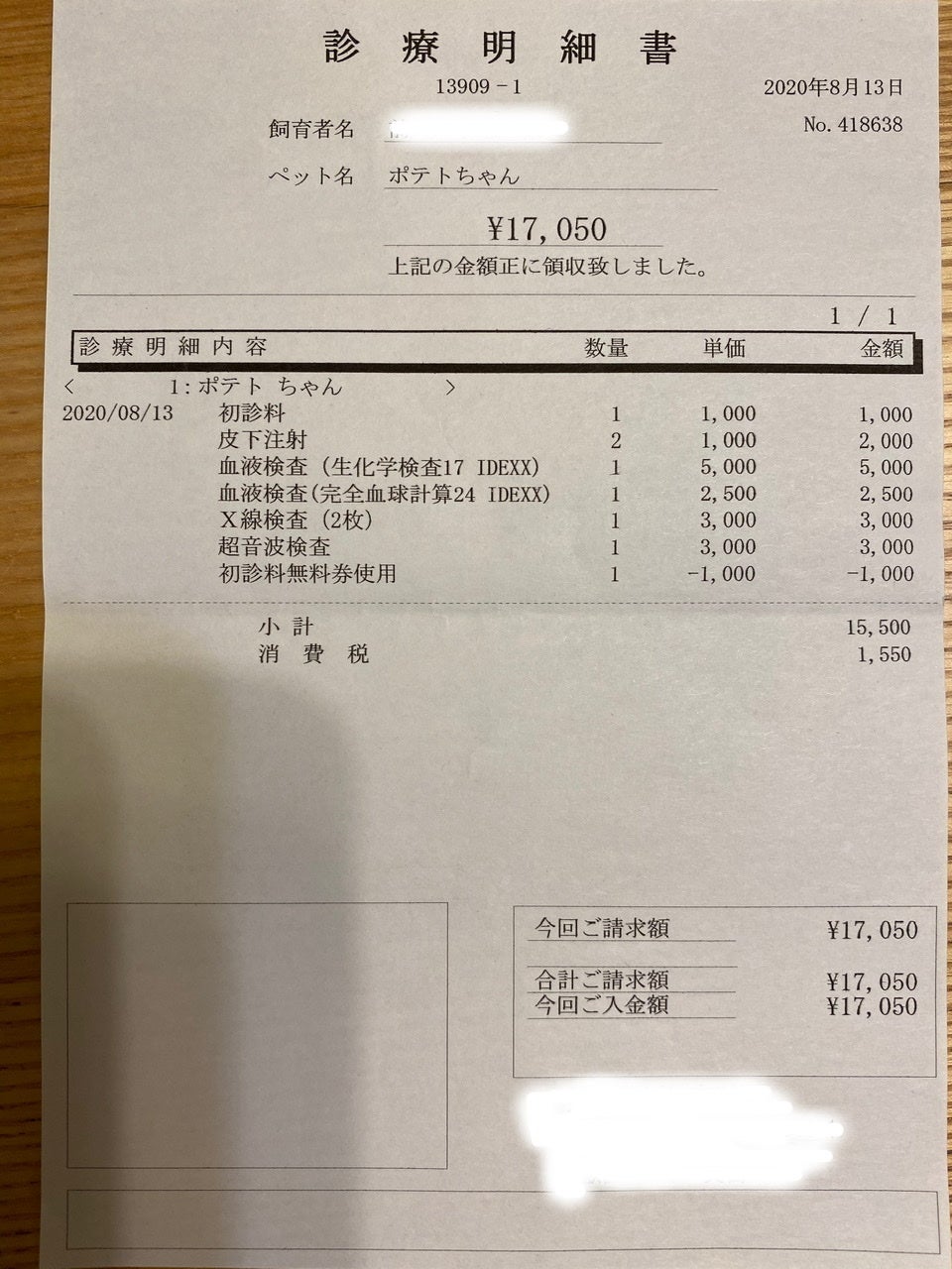 使用した治療費やポテトの病状は活動報告でご報告いたします。