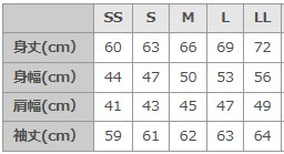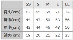 サイズはSS、S、M、L、LLを用意しています。