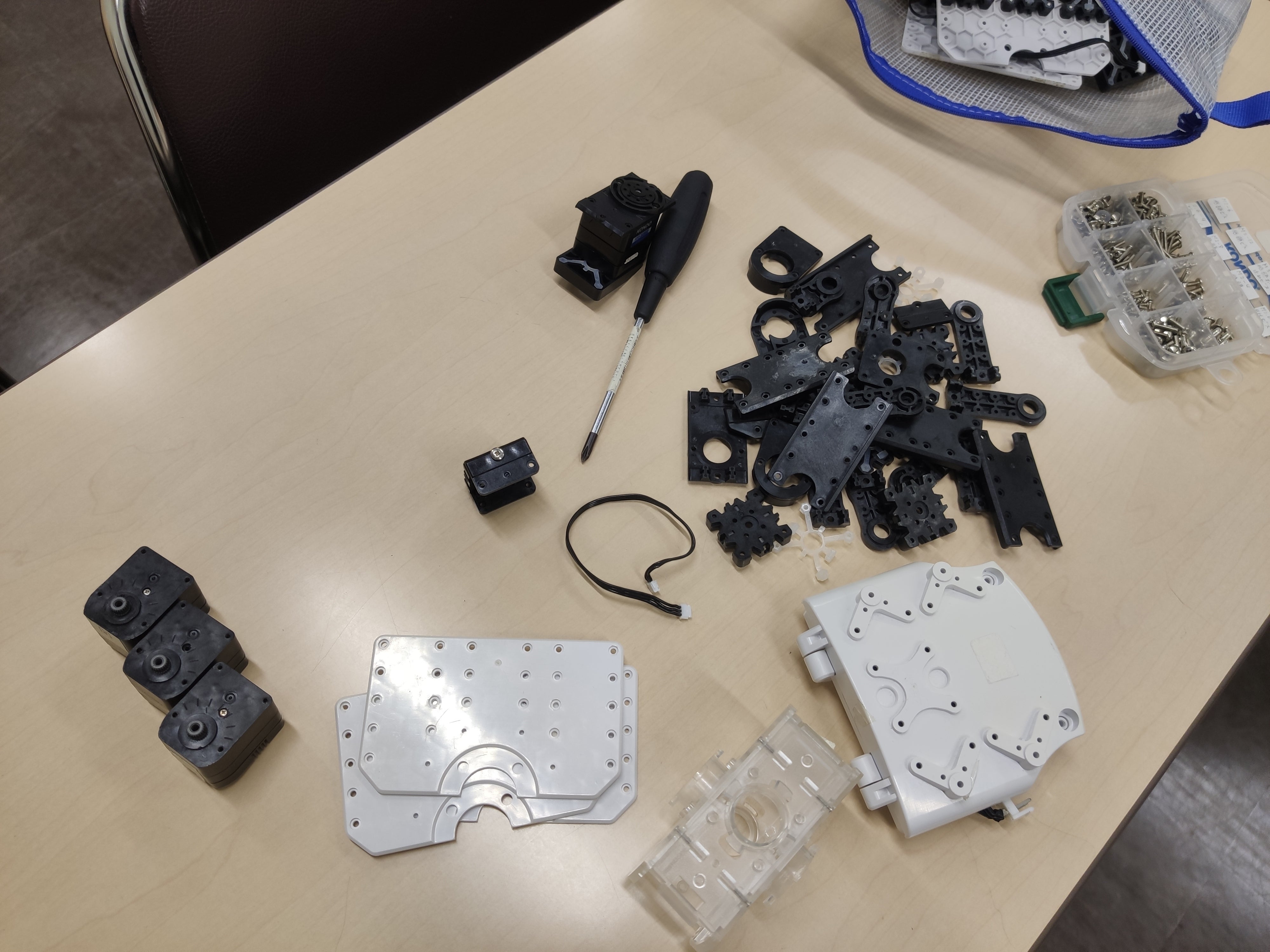 サーボモーターとパーツを自由に構成して、レギュレーションに沿ったロボットを自由に制作し、制御プログラミングまでを行なっていきます。