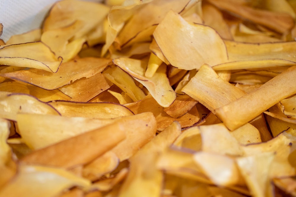 おいものチップスもさつまいも本来の美味しさを最大限引き出した商品です。 このおいものチップスを、パッケージして全国の皆さんにもお届け出来るように準備を進めているところです。
