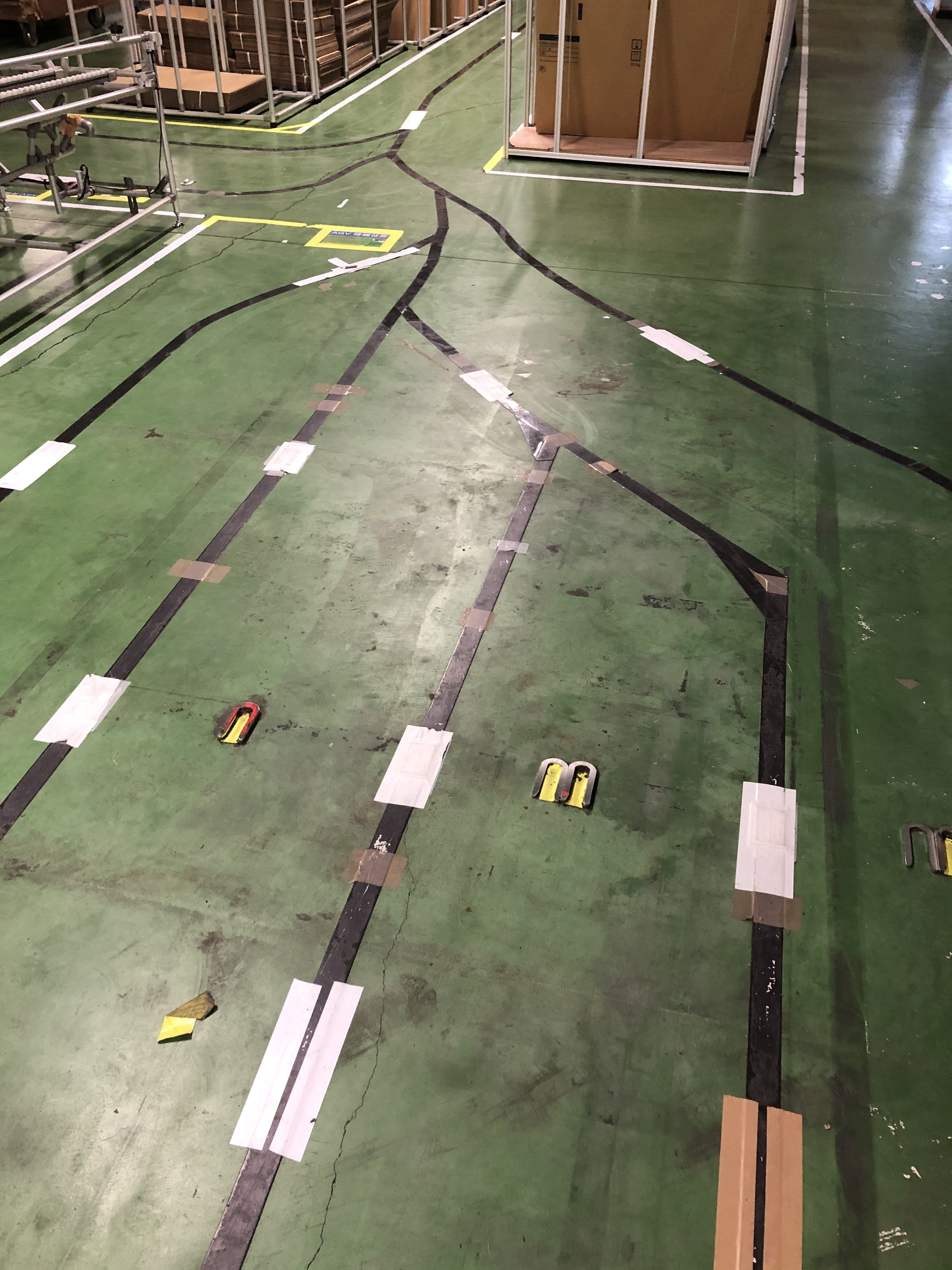 現場の方たちと一緒に問題点を探っていたところ、AGVのトラブルを現場の人が対応しているケースがあることがわかりました、原因を深堀していくと、現在導入されている搬送機は磁気テープの上を走るもので、冒頭に記載したように運行の管理も大変です、レイアウトの変更が発生したら磁気テープを張り替えなければなりませんし、障害物が置かれていると衝突を回避回避するために停止したり、脱線したり、現場ではAGVが止まっているのに気が付いた人が移動させたりしています。