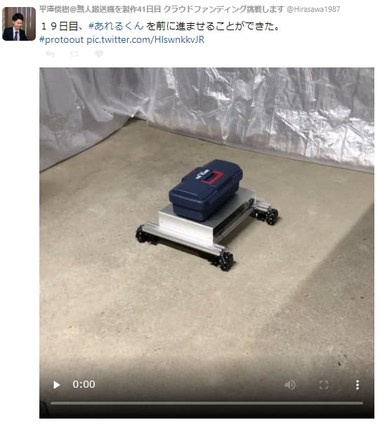 2020/12/22 08:14昨日クラウドファンディング終了しました14日間で13人の方から25,100円のご支援をいただきサクセスすることができました。本当にありがとうございます!温かいメッセージもいただきすごく嬉しいです。あれるくんはこれからも進化していきます!今日から新たなるスタートラインに立ち、製作を続けていきます。これからも応援よろしくお願いいたします! もっと見るあれるくんの軌跡を1本の動画にしてみました。