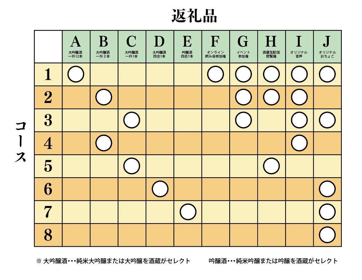 お酒は大吟醸酒または純米大吟醸酒を酒蔵がセレクトします。