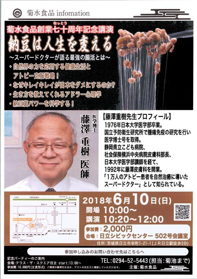 みなさん、未曽有の経済混乱を引き起こしているコロナ禍でも納豆生産で日立市の地元経済を支えている菊水食品をクラウドファンディングで応援しましょう。」