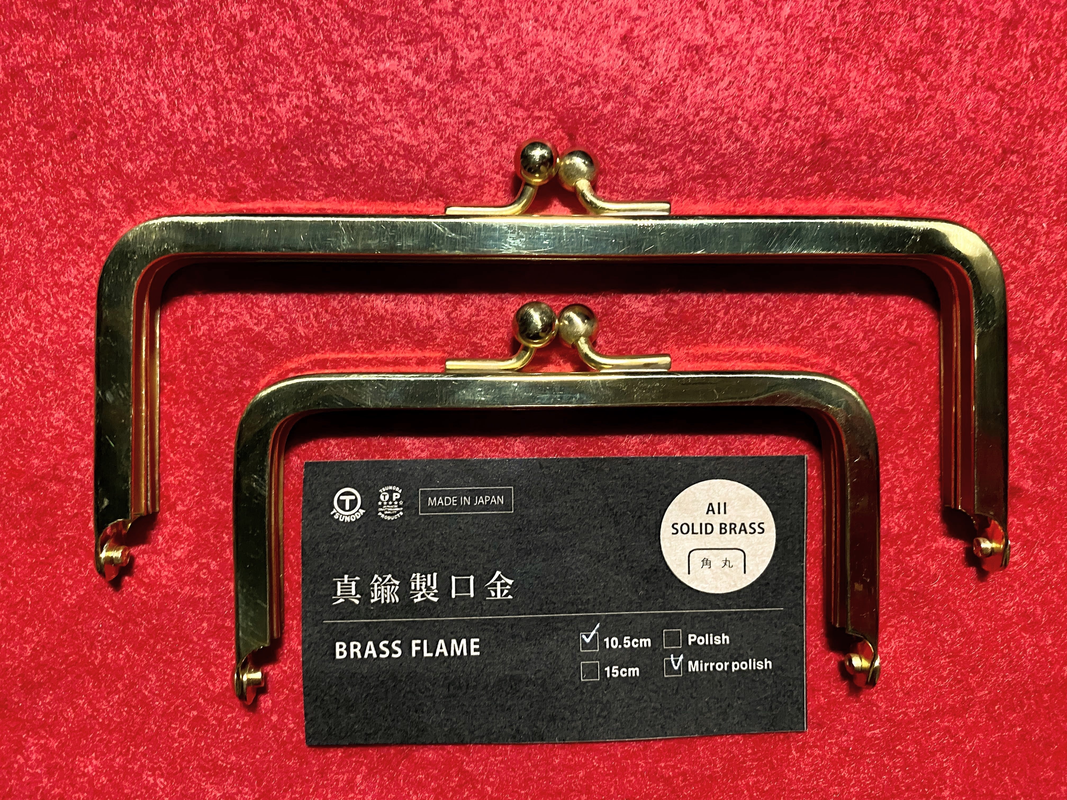 鏡面磨きの本真鍮製のがまぐち金具