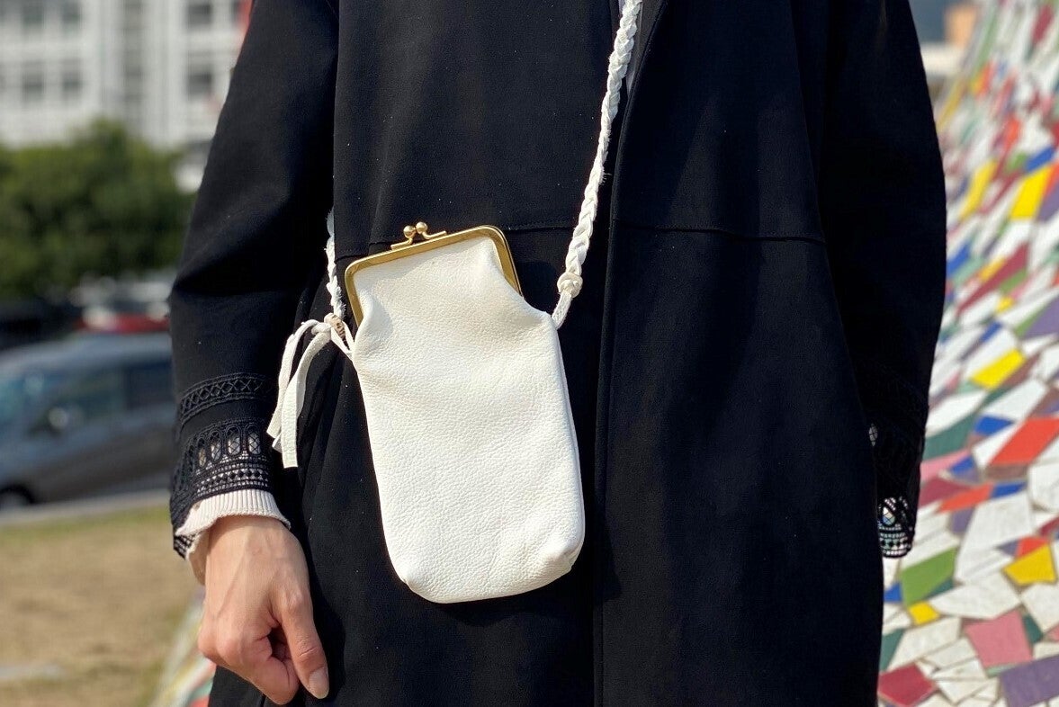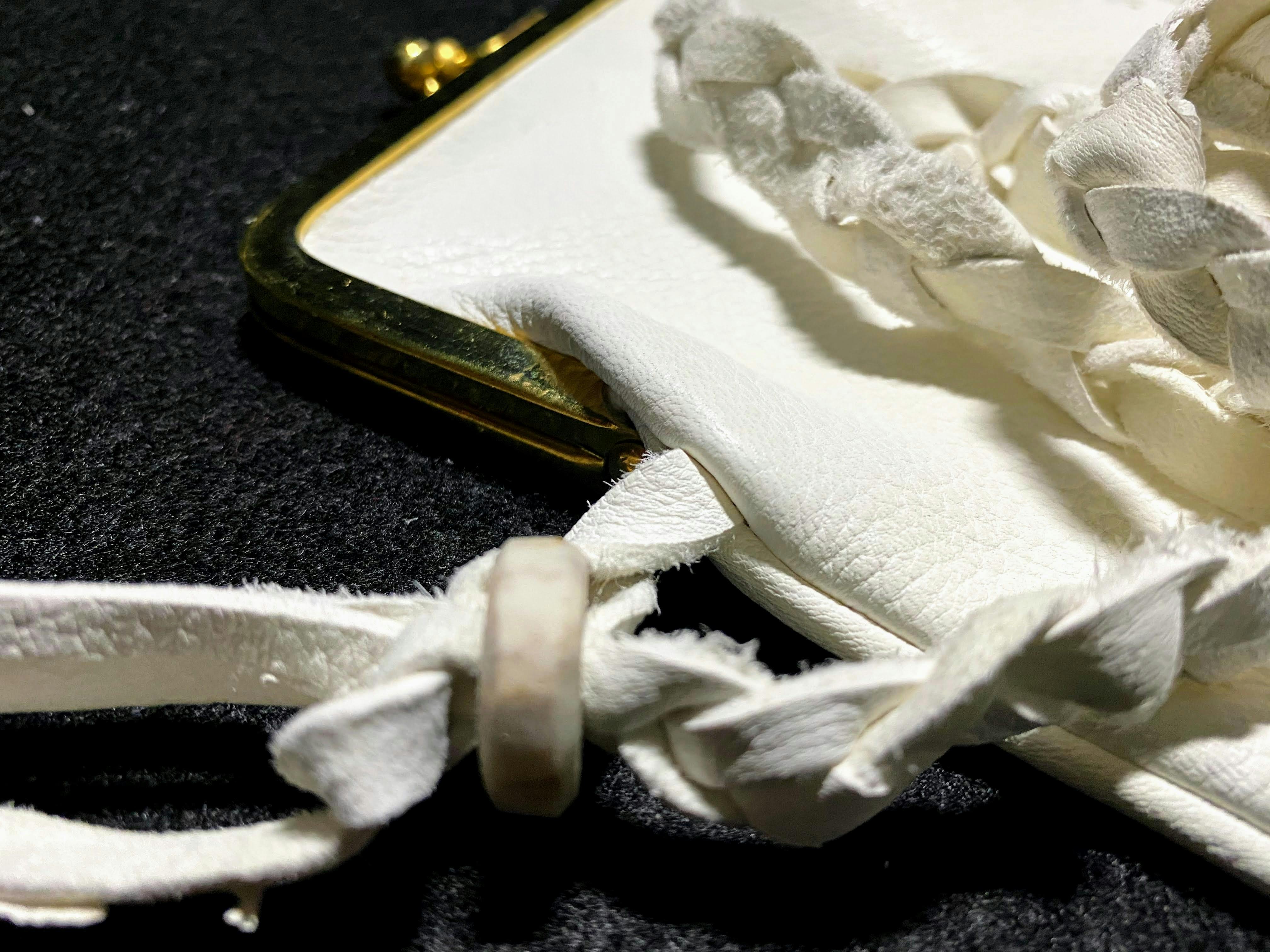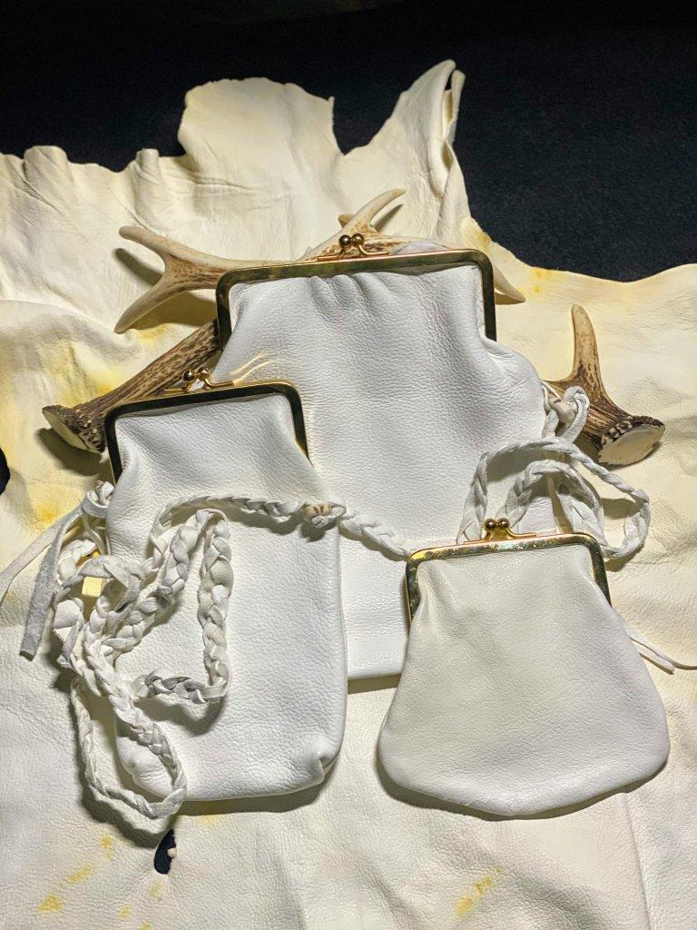 奇跡の白い鹿革「ポルティラレザー」を使い、今回製作したのはがまぐちのポシェット2種類と財布1種類。