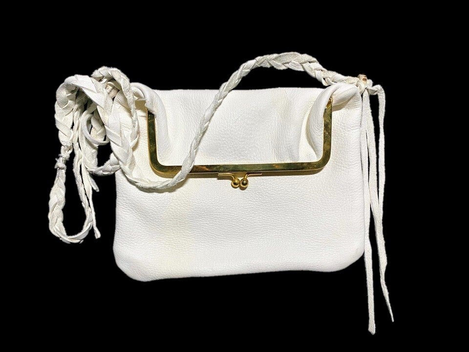 白い鹿革 gamaguchiバッグ