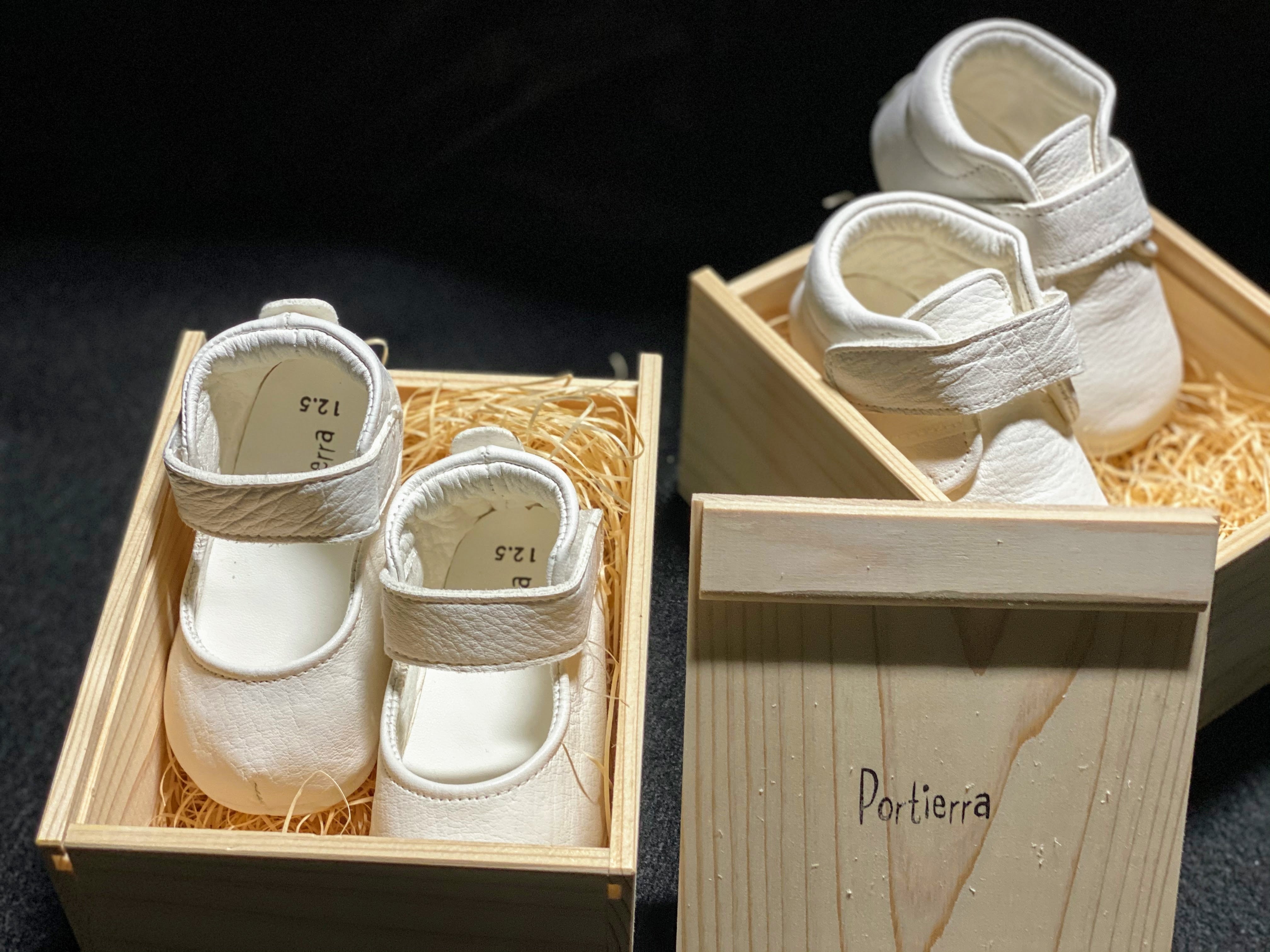 ▲ファーストシューズはそれぞれ木箱入り。