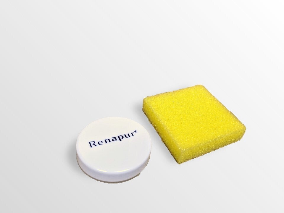 ▲鹿革部分のお手入れのために、ドイツ製クリーム「ラナパー」をセットにします。