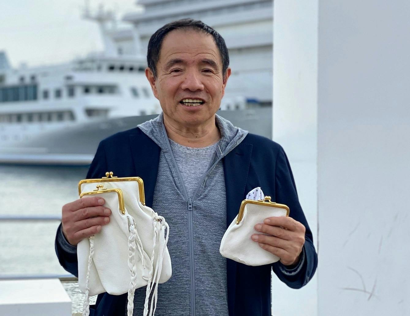 今回のプロジェクトは、神戸元町の創作鞄槌井代表の槌井仁基様と、兵庫県たつの市のタンナー タツノラボ事業部長の三木大介様のご協力によって、立ち上げることができました。更に熟練の職人の手作り・本物の「真鍮」鏡面磨きのがま口金具を用いました。