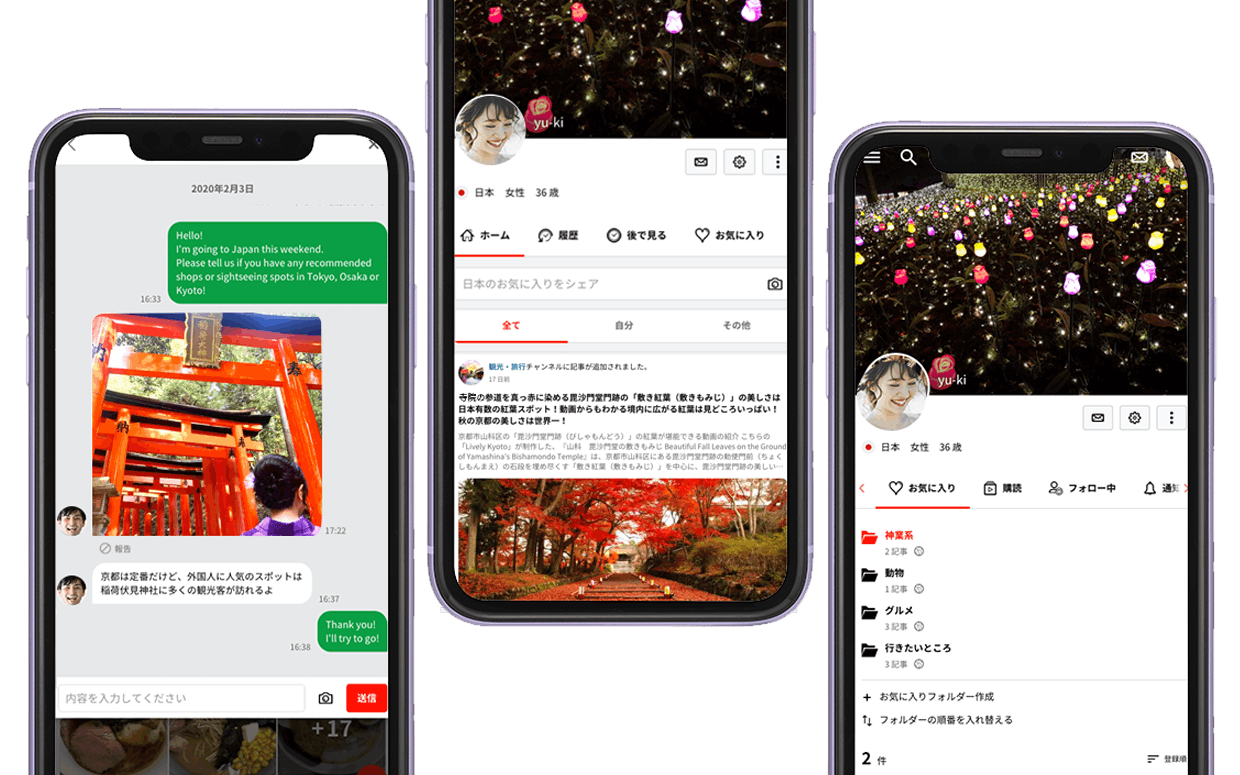 日本国内はもちろんのこと、世界中のユーザーに向けて日本の魅力の発信や、日本についての情報を交換できたりと、国を超えた友人とのコミュニケーションを楽しむことができます。