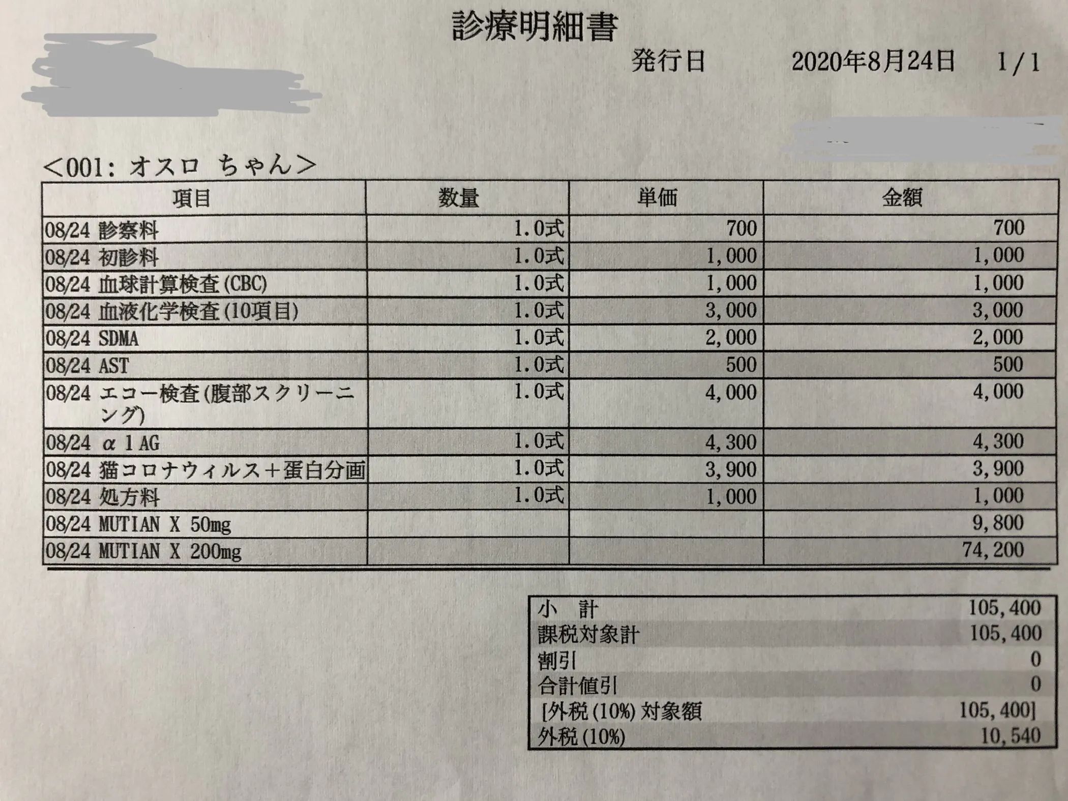 ※「MUTIAN」は日本において動物医薬品として承認されていません。オスロの飼い主として、個人的な自己責任と判断のうえで彼にとって投与が必要と考えていますが、全てのFIPの猫に「MUTIAN」が有効であるという趣旨ではありません。