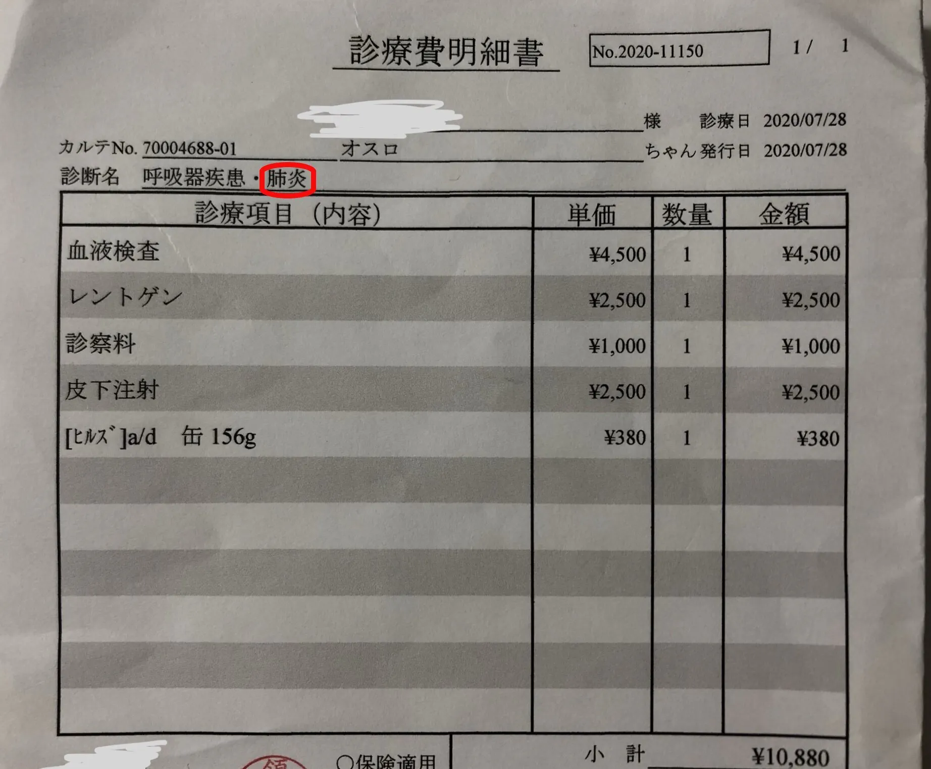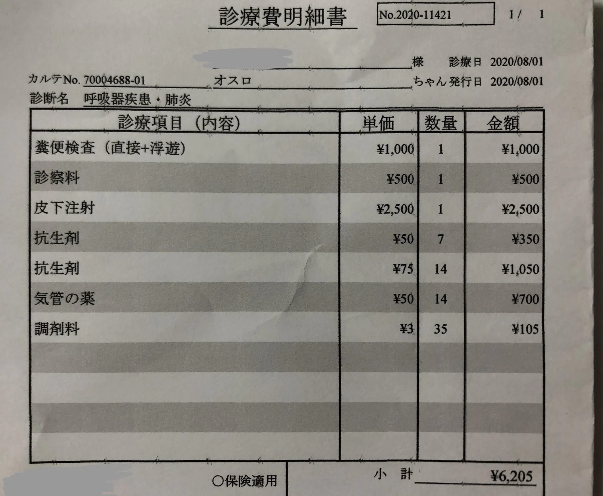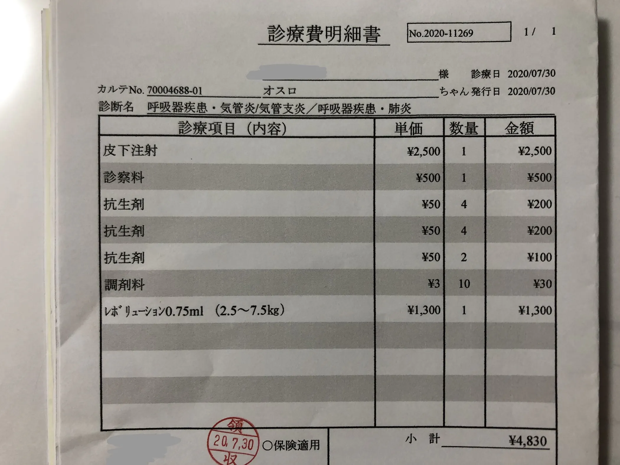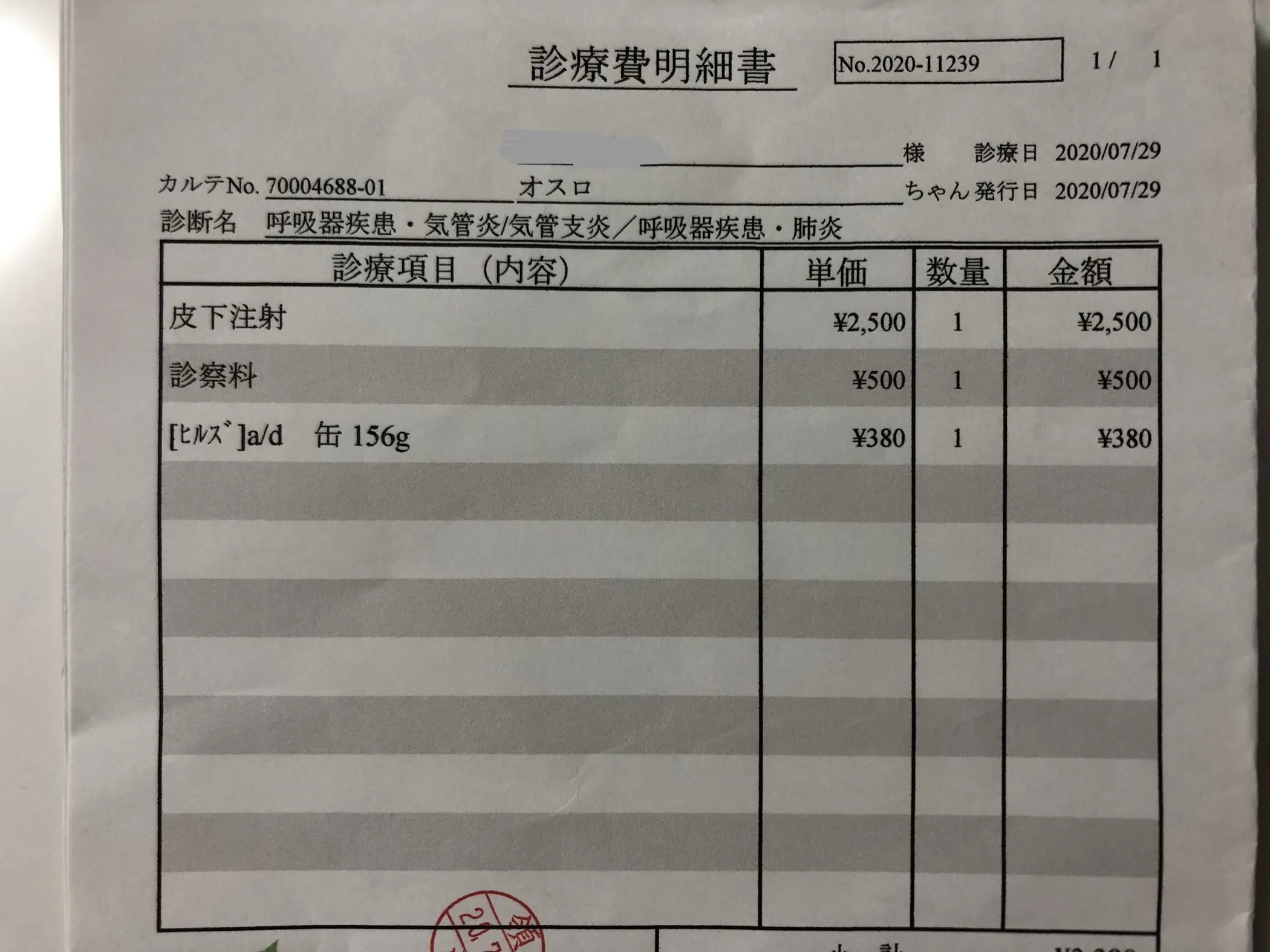熱はまだありましたが、体調は戻ってきていたため1週間に1回の通院でいいことに。気管を広げるお薬を追加。引き続き抗生物質を投与して来週血液検査をすることに。