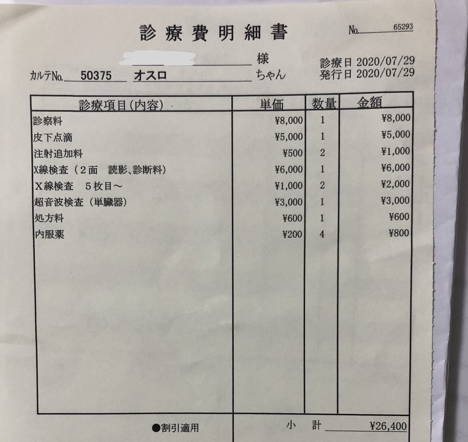 7/26 オスロが鼻をぴくぴく動かして、息が少し荒い様子でした。最初は遊びすぎて息が上がっているのだろうと思っていました。