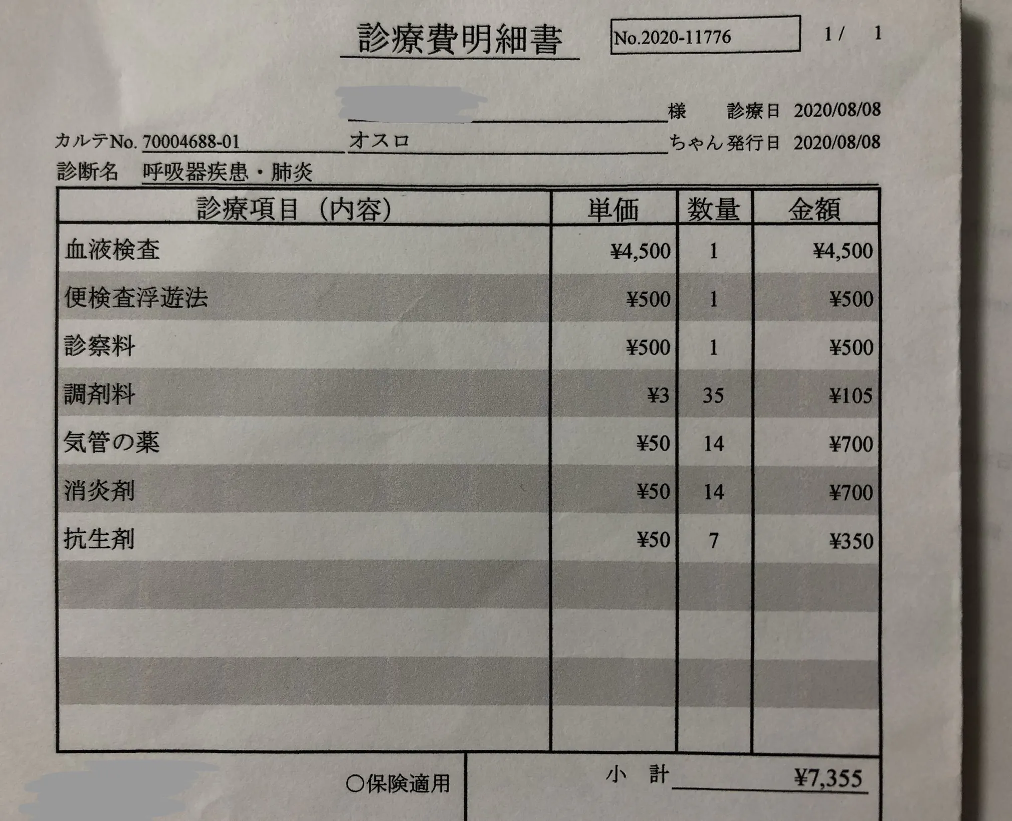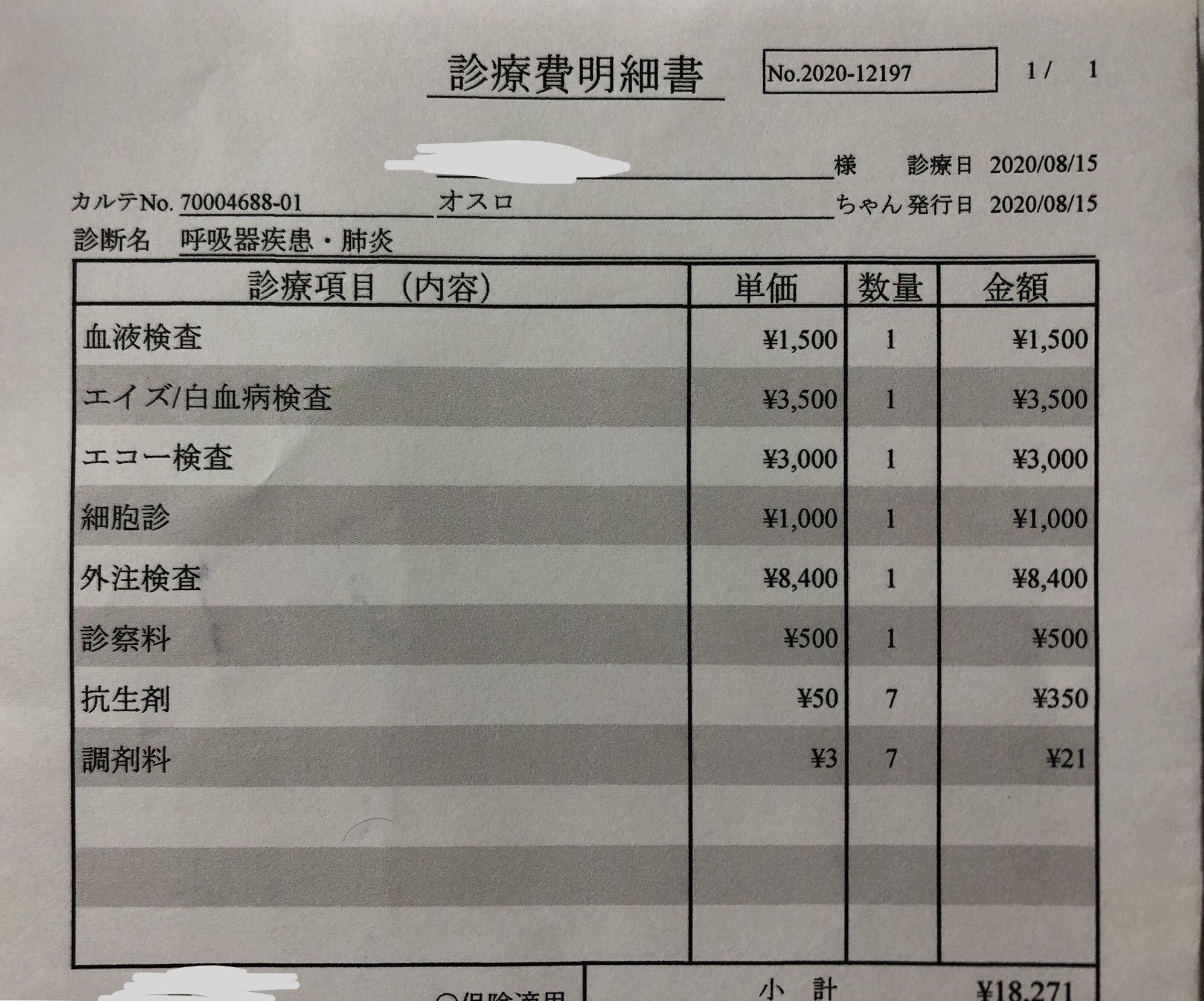7/28 仕事を休みオスロを病院へ。結果肺炎と診断されました。