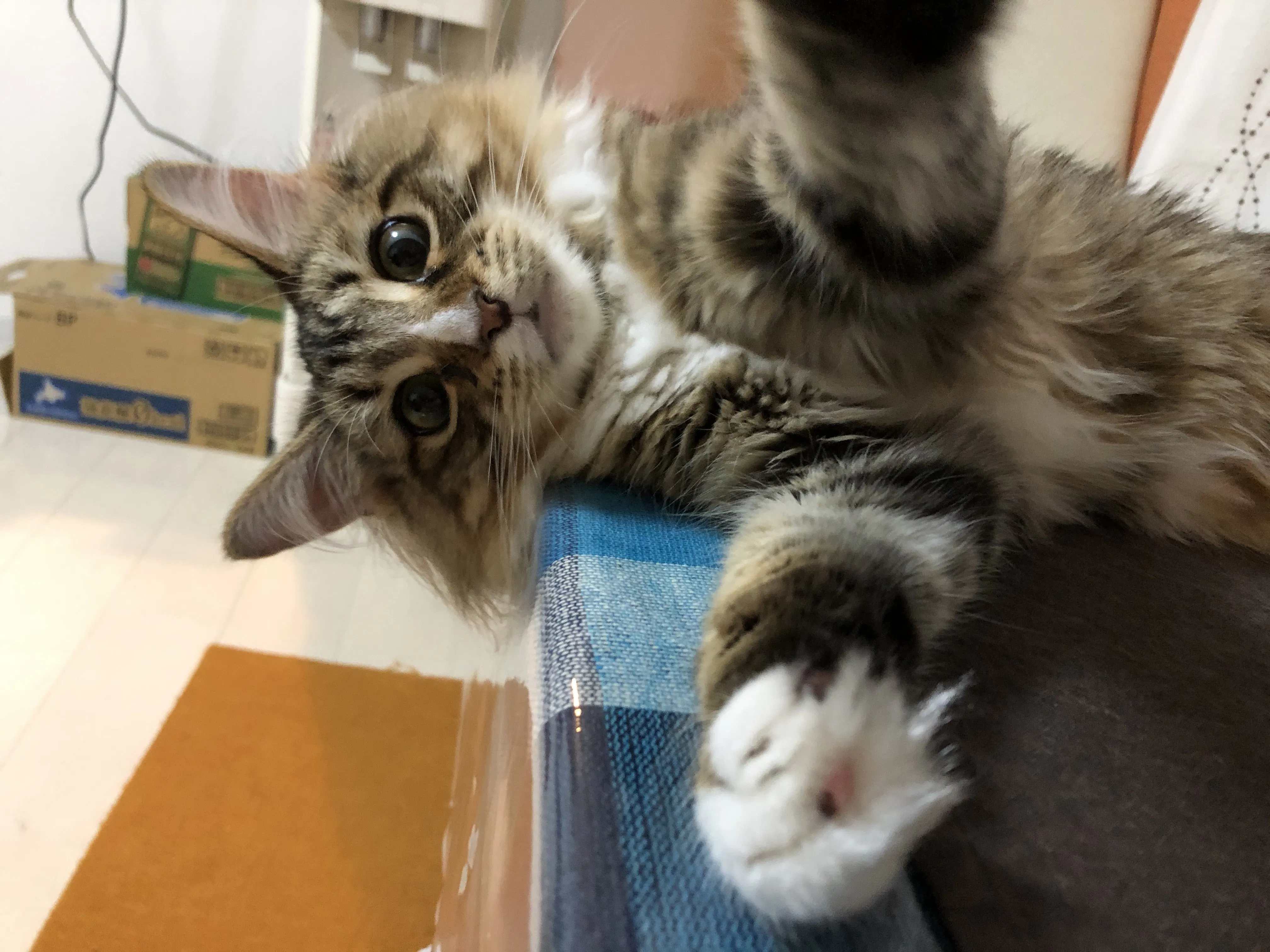 7/27 遊んでいなくても鼻がぴくぴくしていて、咳が出始めました。相変わらず呼吸も荒くお腹もぴくぴくしているため、これはおかしいと思い、Youtubeなどで同じ症例を検索すると似たような呼吸をしている猫ちゃんを見つけたので病院に連れていくことに。