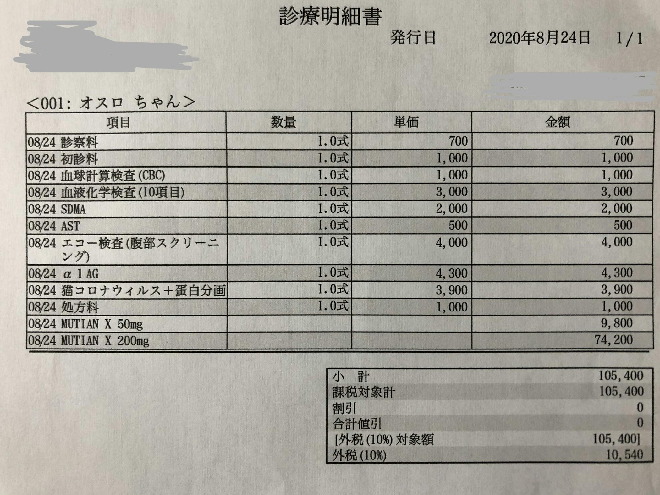 ※「MUTIAN」は日本において動物医薬品として承認されていません。オスロの飼い主として、個人的な自己責任と判断のうえで彼にとって投与が必要と考えていますが、全てのFIPの猫に「MUTIAN」が有効であるという趣旨ではありません。