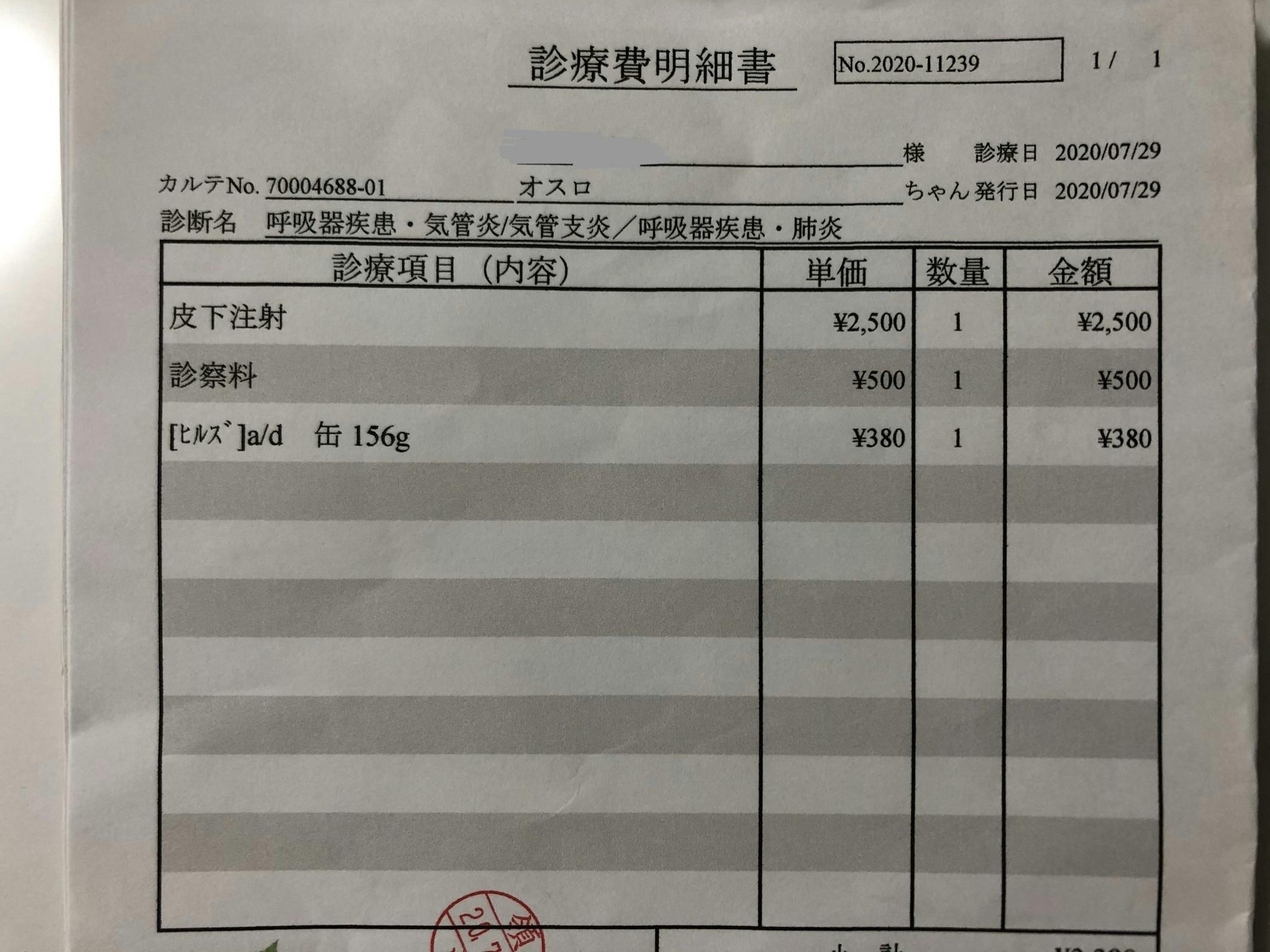 熱はまだありましたが、体調は戻ってきていたため1週間に1回の通院でいいことに。気管を広げるお薬を追加。引き続き抗生物質を投与して来週血液検査をすることに。