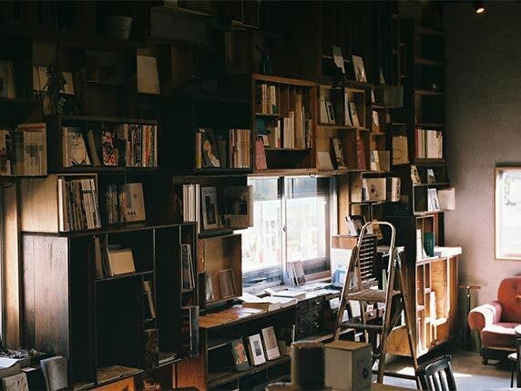 転機は3年目。2016年の年明けでした。客席も書架も手狭になってきた、と感じ始めたちょうどその頃、当時の店舗から同じ通りを東に数軒だけ進んだ先に、旧家電販売店が空き家になっていることを知りました。教えてくださったのは、その建物の大家さんであり地主さん。「更地にして駐車場にしようと思うのだけれど、これを使いたい若者なんているだろうか」と相談してくださったのです。僕は自分の店を移転することを即決。かねてから「移転するそのときが巡ってきたら、一緒に空間をつくりたい」と願っていた空間デザイナー、東野唯史(あずの・ただふみ)さんに依頼して、移転先のリノベーションに臨みました。そうして同年6月にリニューアルオープンを迎えた店舗が、現在の〈栞日STORE〉(本店)です。独立系出版物を中心に扱う書店兼喫茶として「ちいさな声に眼をこらす」をテーマに掲げ、営んでいます。