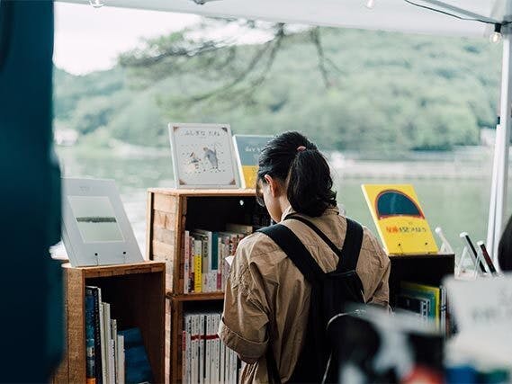 開業翌年の初夏に妻が合流して、夫婦ふたりで営む体制になりました。開業1周年を目前に控えた2014年7月には、松本から北に車を1時間ほど走らせたところにある木崎湖(長野県大町市)のほとりのキャンプ場を舞台に、ブックフェス「ALPS BOOK CAMP」を初めて開催しています(以降、2019年まで毎夏開催。2020年は中止)。