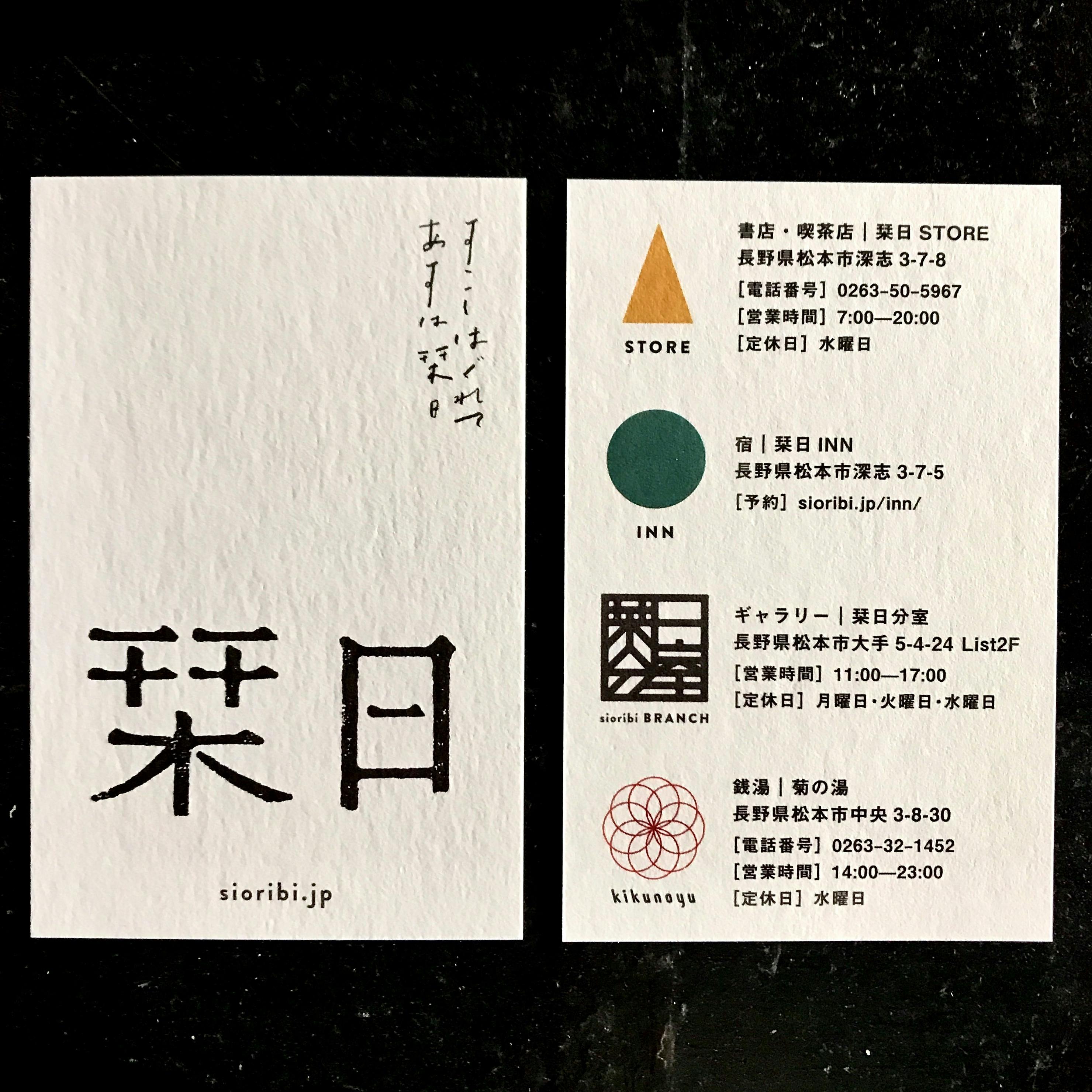 2020/10/17 20:50きのう、松本が誇る印刷会社〈藤原印刷〉が、その社訓のとおりに「心刷」してくれた、栞日のあたらしいストアカードを届けてくださいました。安定のデザインは、安曇野〈してきなしごと〉の詩人、ウチダゴウさん。4年前の移転リニューアルのとき、いったんは舞台裏に退いた初代ロゴタイプ(明朝体の漢字表記「栞日」)を、オモテ面に大きく印刷。〈STORE〉〈INN〉〈分室〉に、この秋〈菊の湯〉が加わって、計4つの場を営むことになった栞日のシンボルとして、表舞台に返り咲きました。ウラ面には、各事業所のロゴマークと営業に関する情報が掲載されています。※ 4月初旬から休業中の宿〈栞日INN〉は、来月中の営業再開に向けて、目下調整を進めております。※※ 同じく4月から休業しているギャラリー〈栞日分室〉も来月から再開します。リスタートの企画展は、秋開催にスライドした「工芸の五月」の一環として、同実行委員会と共催する本部企画「不要不急の端材展」(11.6[金]- 11.23[月祝])。あたらしいストアカードのオモテ面、右肩には、ゴウさんが4年前の移転リニューアルに際して書きおろしてくださった「栞日の詩」の結びのフレーズが綴られています。「すこしはぐれて あすは栞日」栞日がその事業を通じて生み出したい状況であり光景が、このひとことにギュッと凝縮されていて、僕は大好きなフレーズです。「栞日って、けっきょく何をしているの?」と訊かれたら「はぐれ先をつくっています」と応えたい。その日の誰かが「世間」や「日常」からちょっとはぐれたくなったとき、「どうぞ」と云って受けとめる、「場」であり「時間」をつくっています、と。菊地徹 / 栞日代表―一週間が七日でなくても一年が三六五日でなくてもいいすこしはぐれてあすは栞日― もっと見る