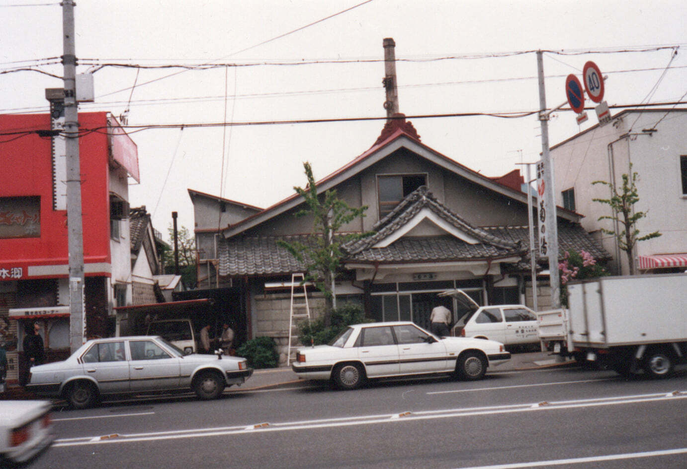 ▲ 斜向かいから/現在と同じ縦看板[平成元年]