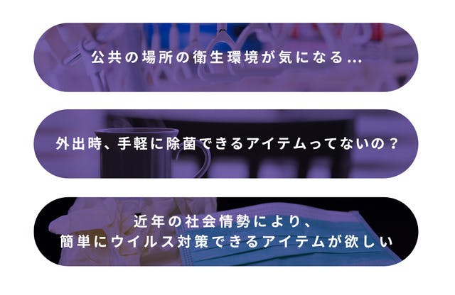 「近年の社会情勢により、簡単に除菌対策できるアイテムが欲しい」