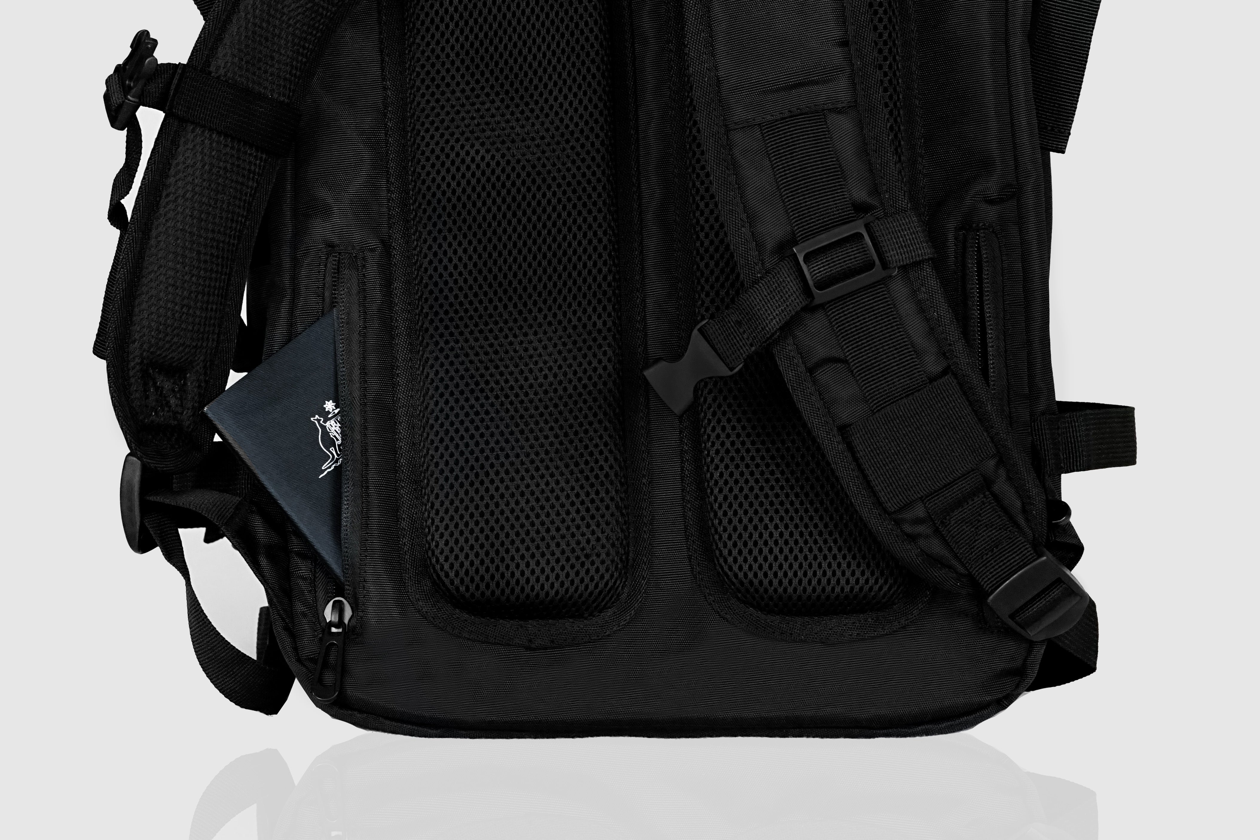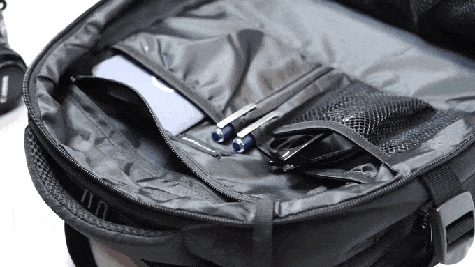 移動中の疲れを軽減してくれるベンチレーションメッシュが施された背面パッドには隠しポケットが配備されており、貴重品の携帯も安全です。