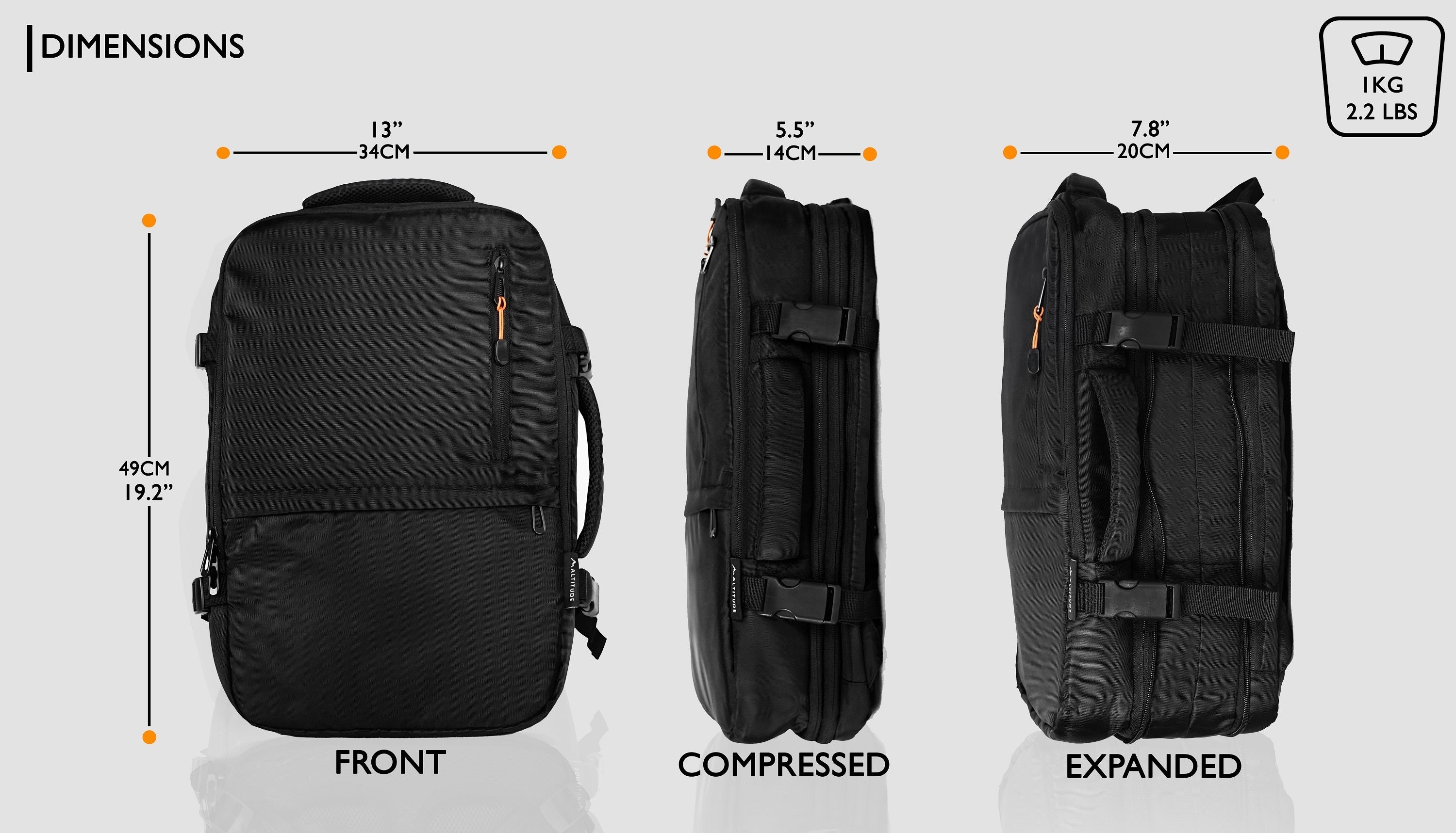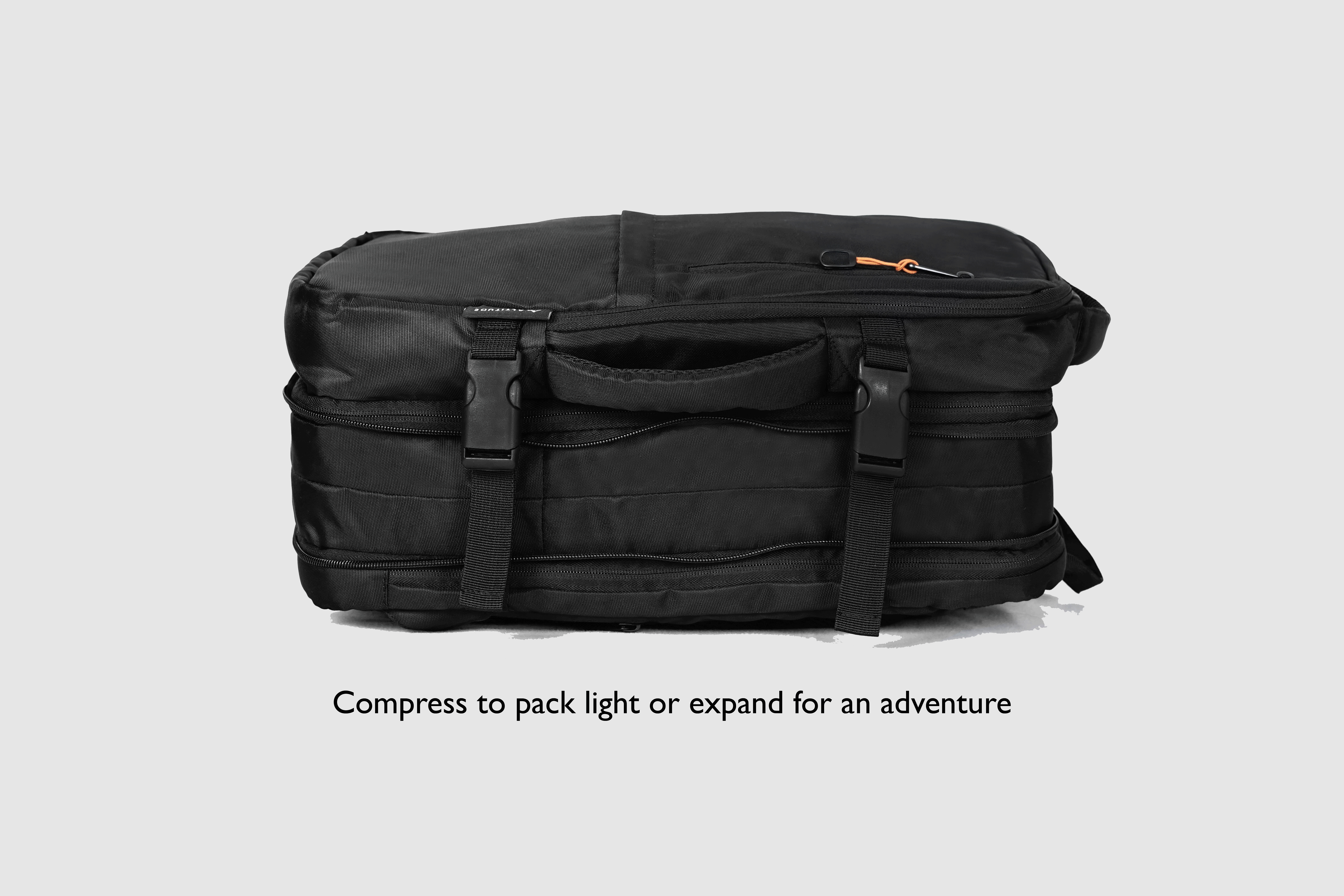 通常時は厚さ14cm、重さ1kgのコンパクト仕様ですが、最大で33Lまで拡張可能。2泊3日程度の旅行や出張にも対応できます。
