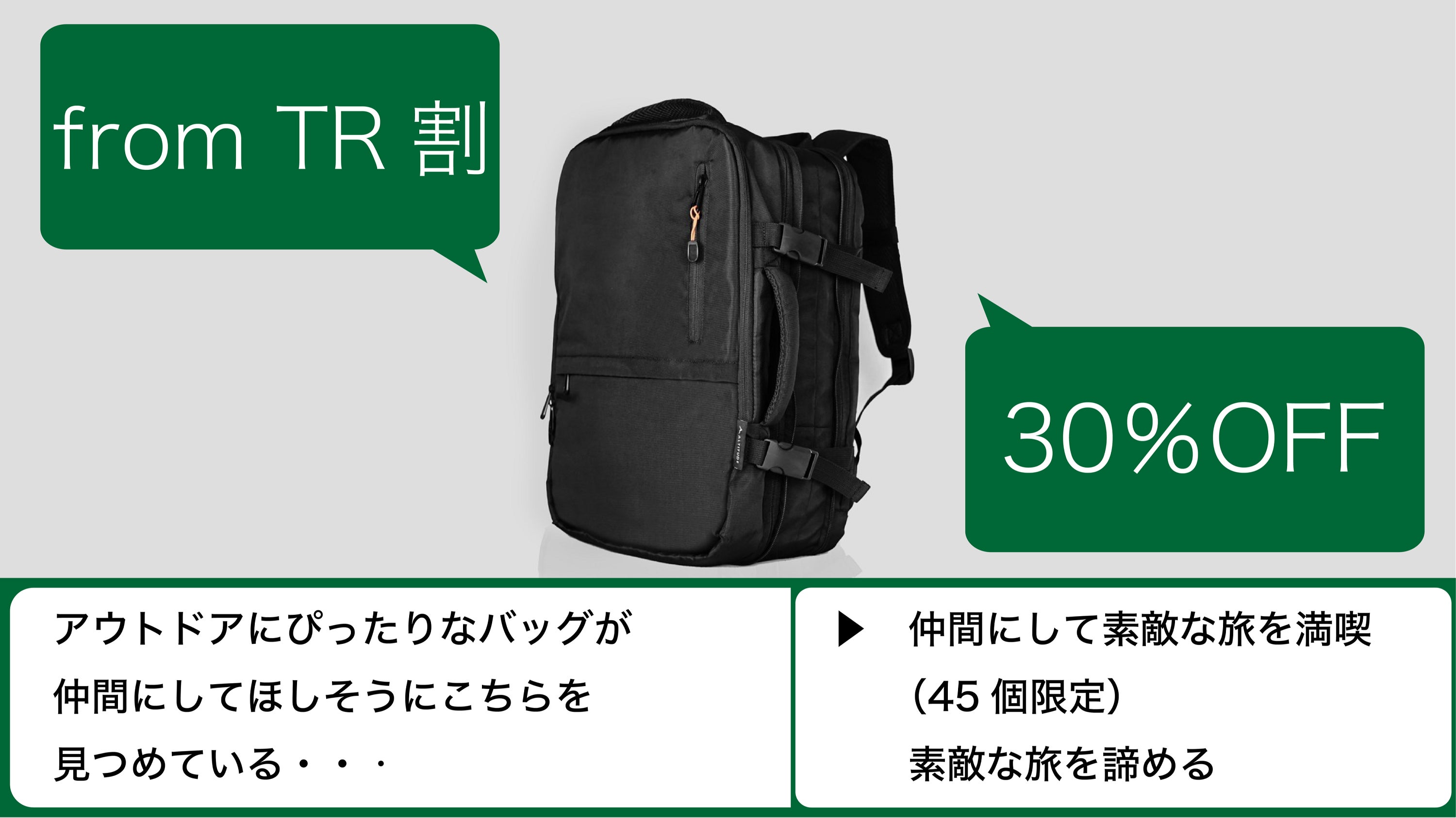 用途はタウンユースから出張、アウトドア、アドベンチャー旅行まで。