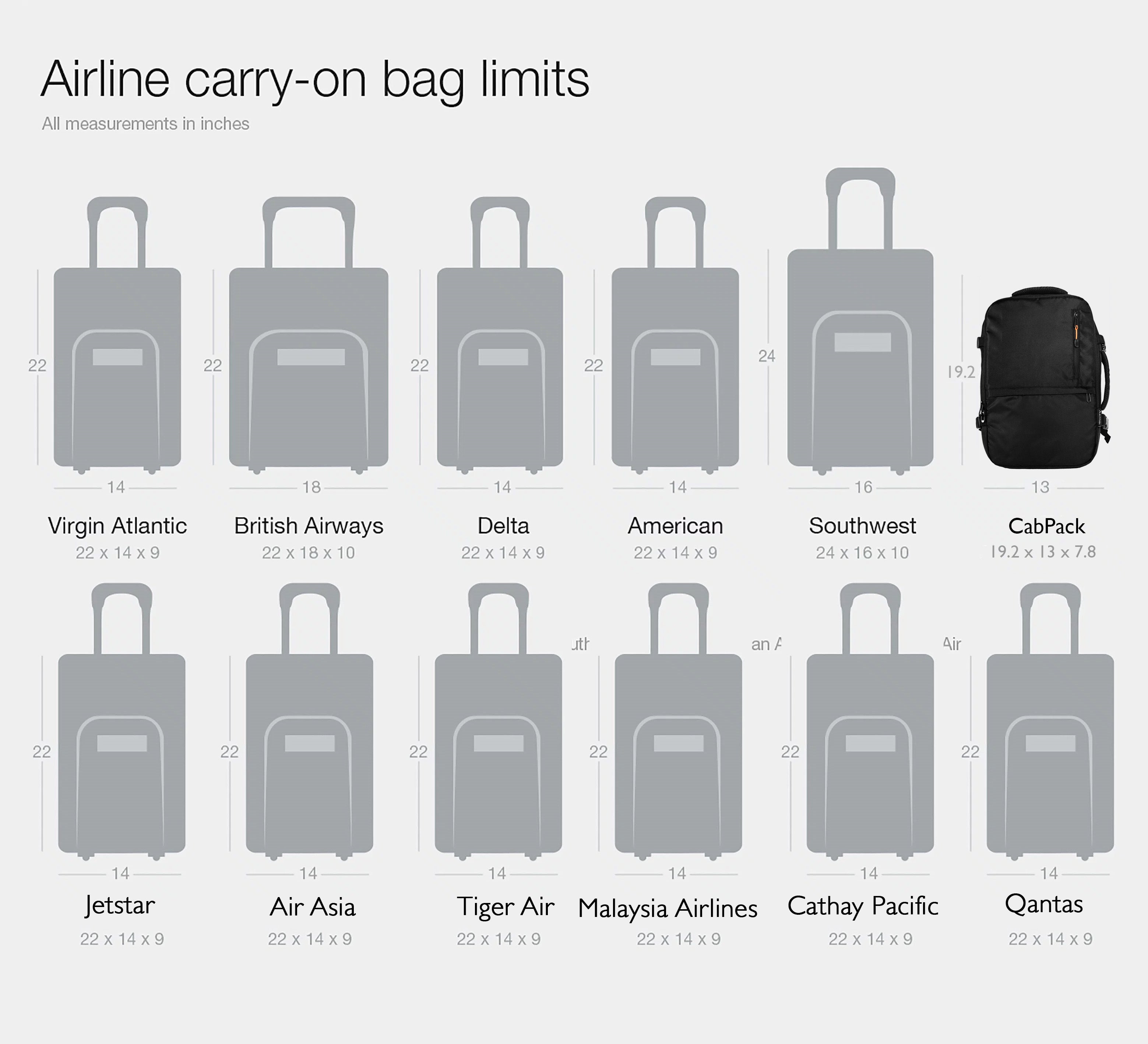 様々なエアラインで持ち込みを想定したサイズに作られています。サイズ制限の厳しいLCCにも対応しているのは嬉しいポイントですよ。
