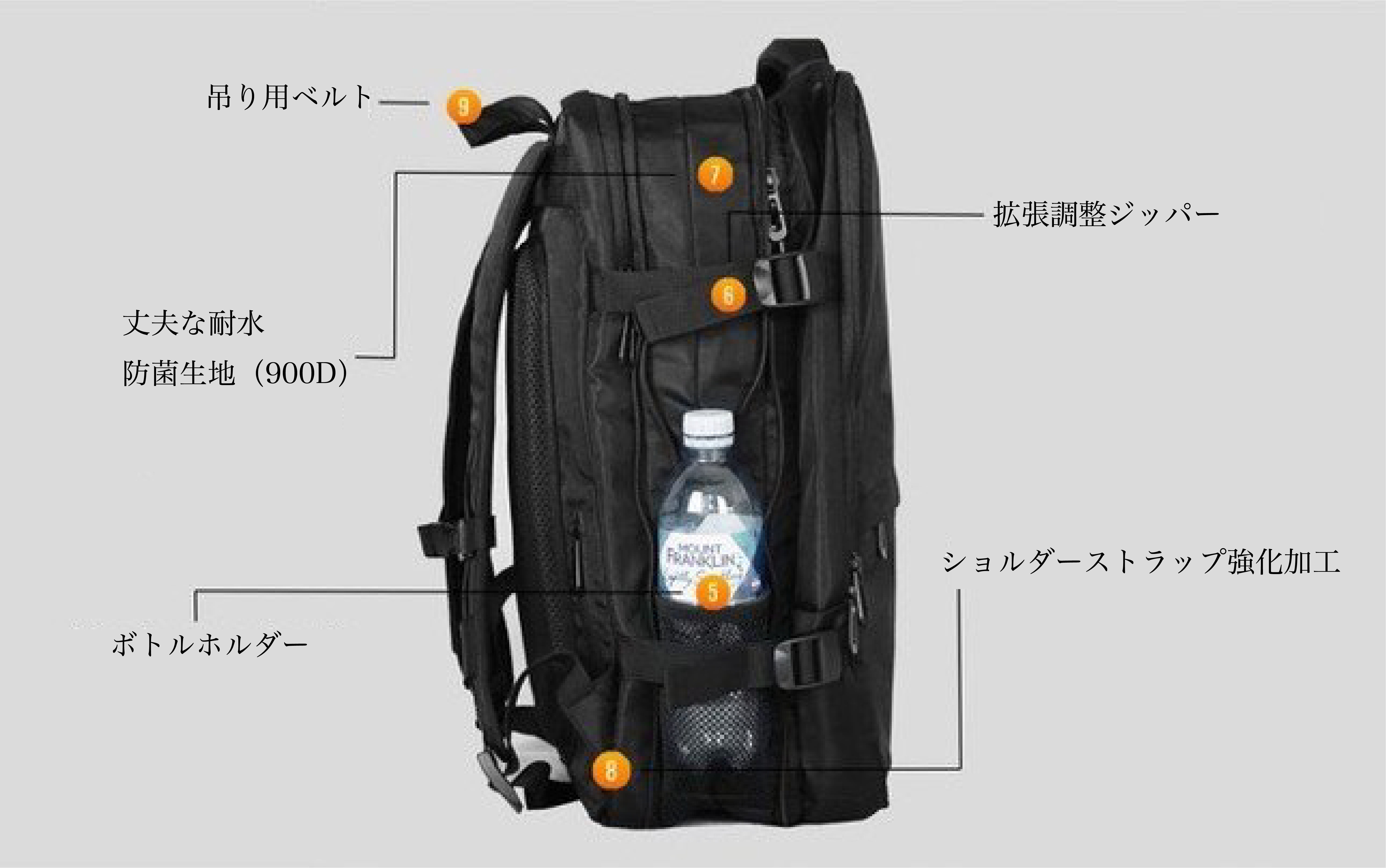 抗菌仕様の高強度900D撥水ナイロン生地で雨の日も安心!