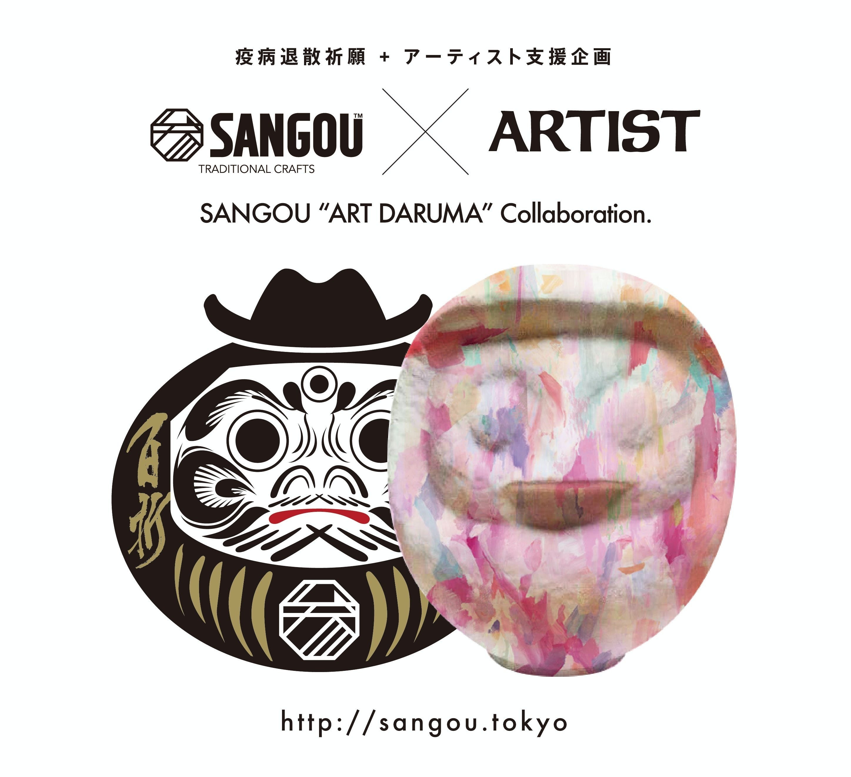 ▼「アートの力で疫病退散!」SANGOU ART DARUMA Collaboration.