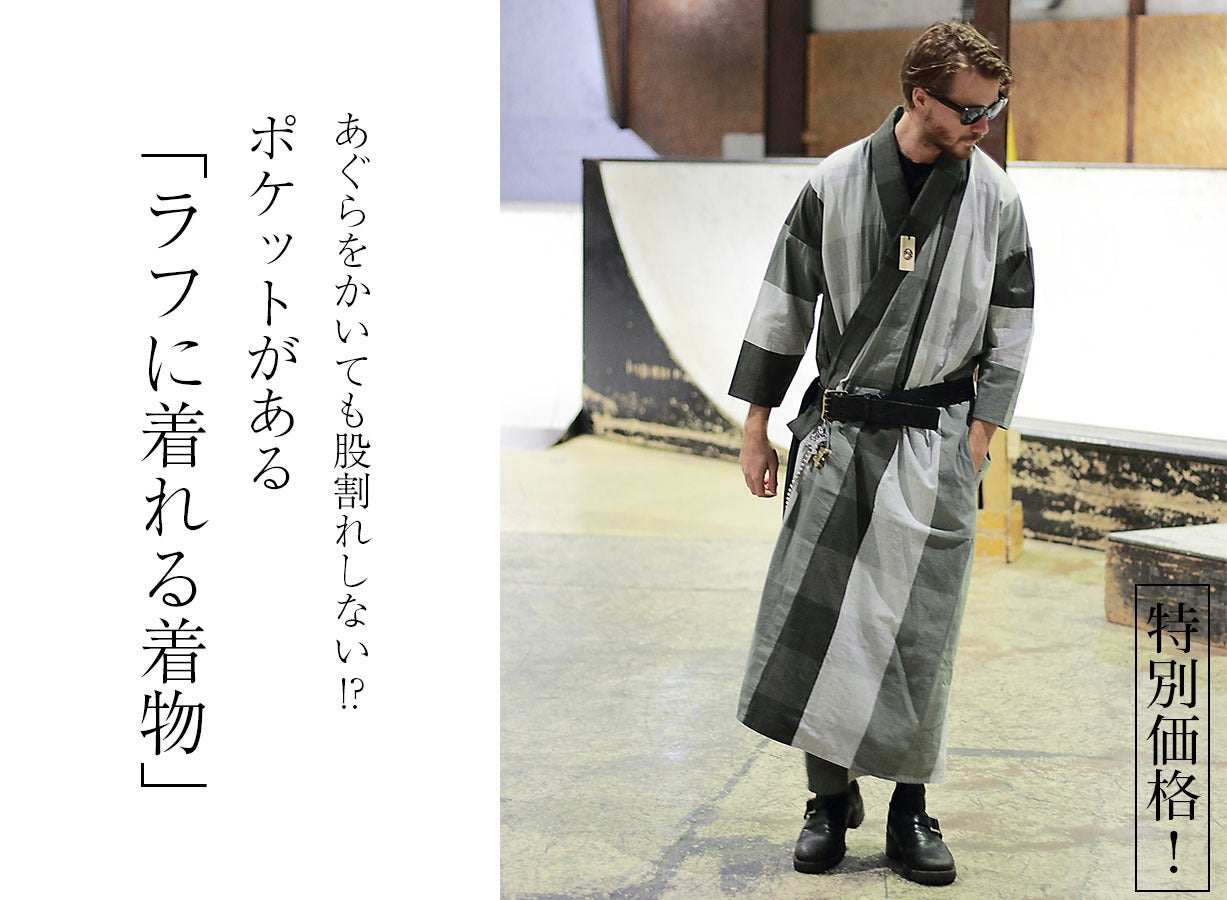 ▼特許取得!あぐらをかいても股割れしない!?ポケットがある「着物」