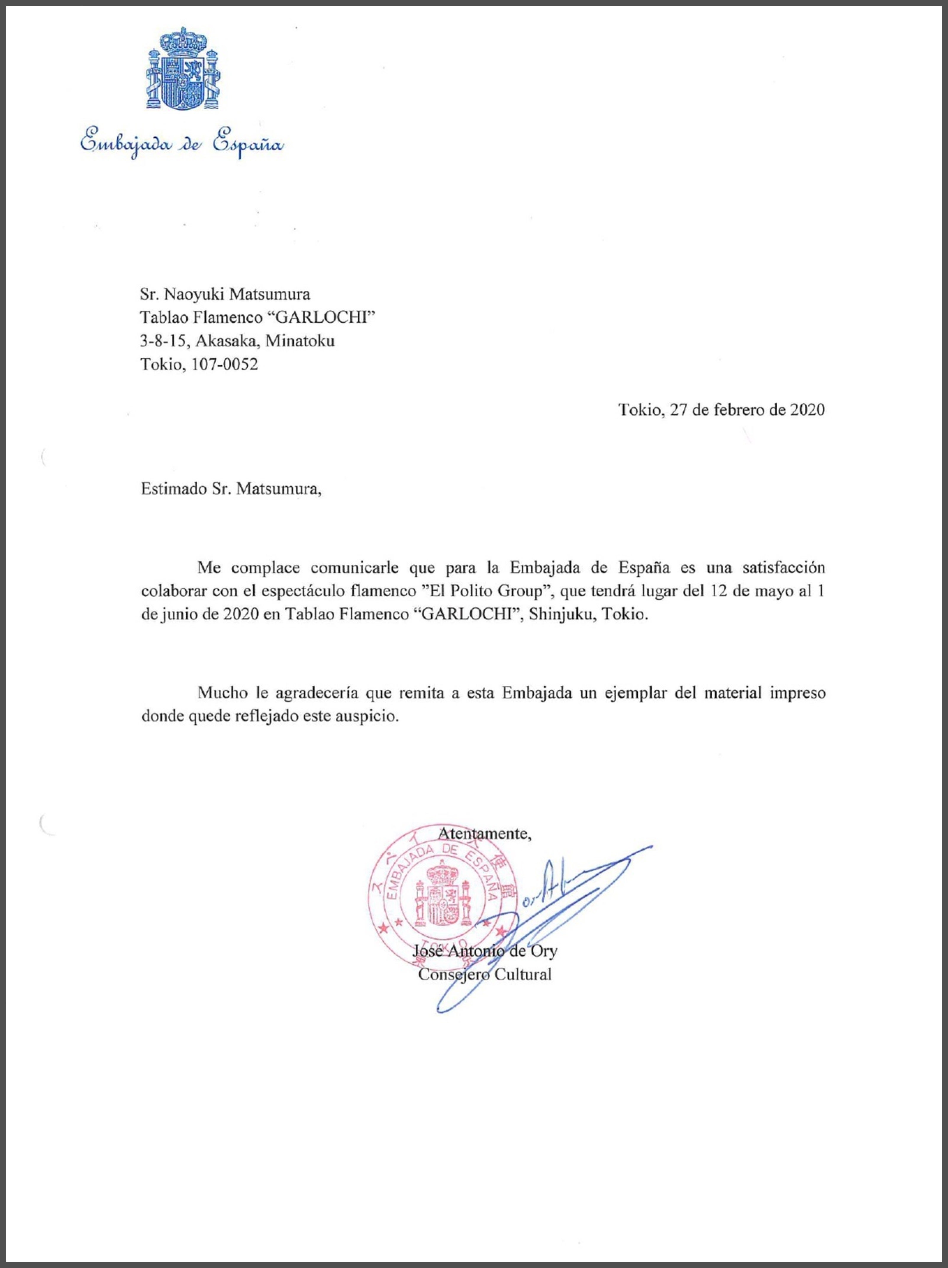 また、その後も数々の素晴らしいスペイン人アーティストを日本のフラメンコファンの皆様に、フラメンコをまだ見た事がない方々にも是非ご覧頂きたく、公演を実現して参りたいと存じます。