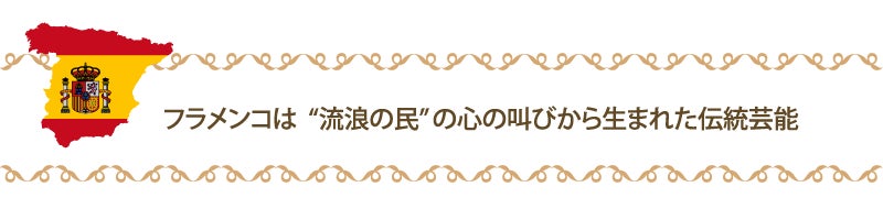 フラメンコは今でこそ華やかなイメージがありますが、元々はインド北西部が発祥ともいわれる“流浪の民”が、起源となり、東欧、南欧、スペインへと、西へ移動する中でその土地の音楽も取り入れながら、今のフラメンコの基礎が作られました。日々の生活の中で生まれる苦しみや悲しみ、時にはあふれ出る喜びを歌や踊りで表現したところから発生しています。 時代と共に、生活の中だけでなく、酒場やタブラオ(フラメンコを見ながら飲食ができる舞台付きの店)などでも披露されるようになりました。
