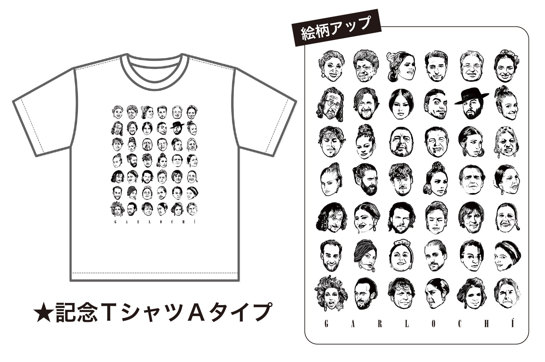 歴代のガルロチアーティストの顔をデザインしたオリジナルTシャツ。スペインの一流アーティストが勢ぞろい!