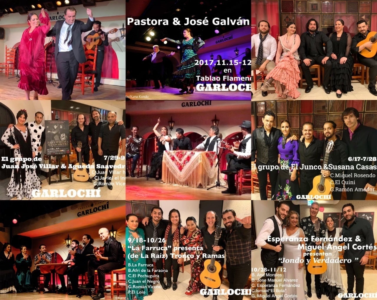 タブラオフラメンコ「ガルロチ」では、オープンより32組のスペイン人グループによるショーを行って参りました。スペインでもなかなか見ることができない、普段は劇場でしか見ることができないメジャーアーティストや、トップスター同士の夢の組み合わせ、フラメンコの由緒ある一族のファミリーでの来日など、フラメンコファンにとっては、垂涎の舞台の数々。